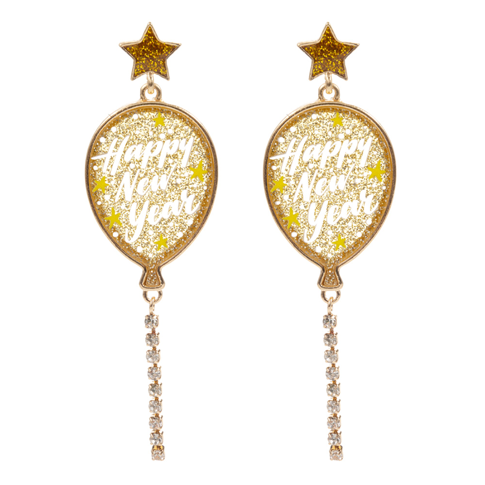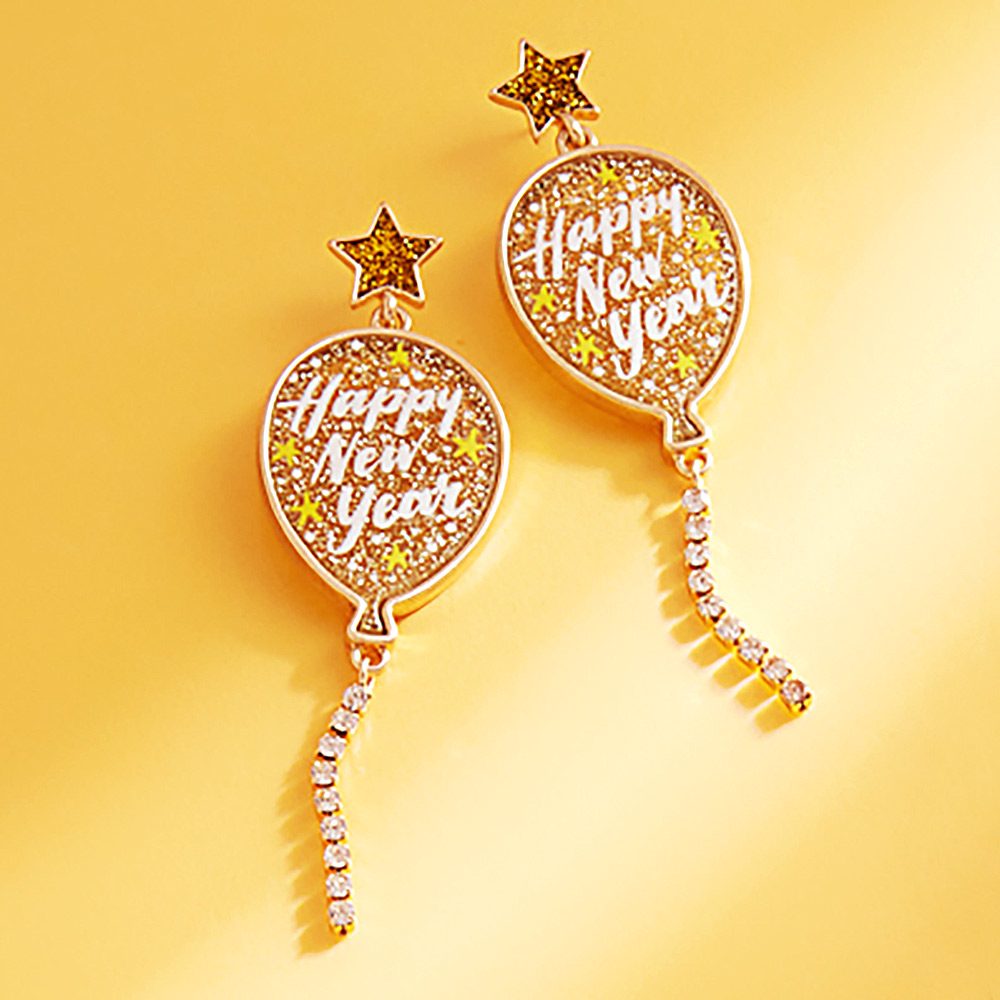 HAPPY NEW YEAR Message Balloon Dangle Earrings