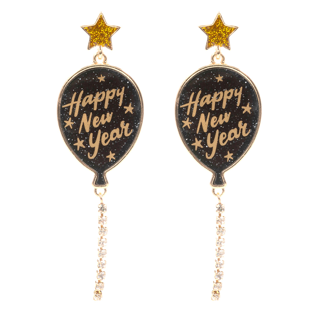 HAPPY NEW YEAR Message Balloon Dangle Earrings