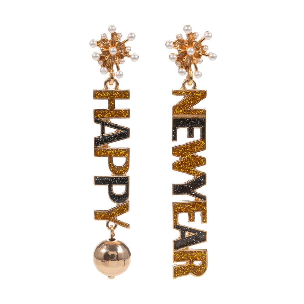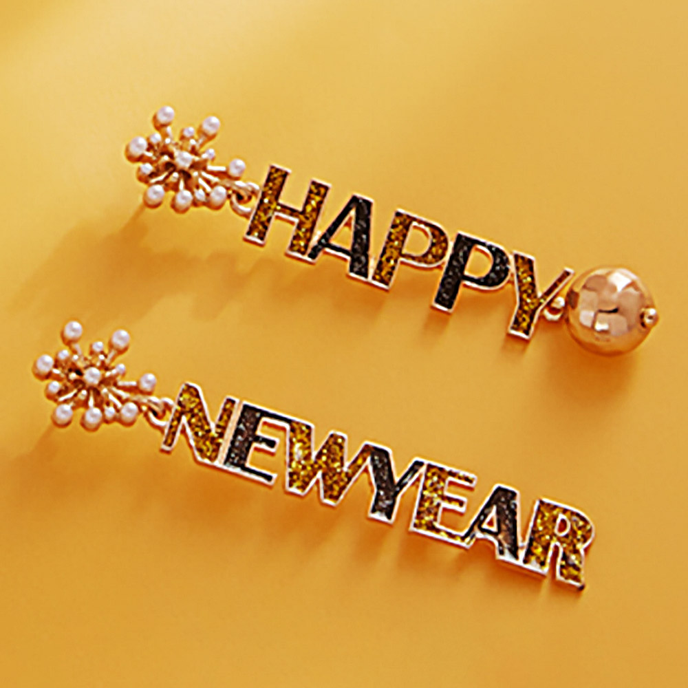 HAPPY NEWYEAR Message Dangle Earrings