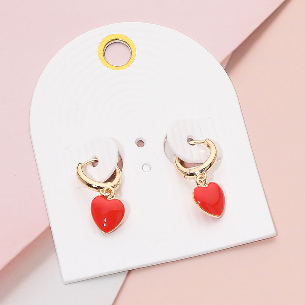 Heart Charm Dangle Huggie Hoop Earrings Heart Charm Dangle Huggie Hoop Earrings