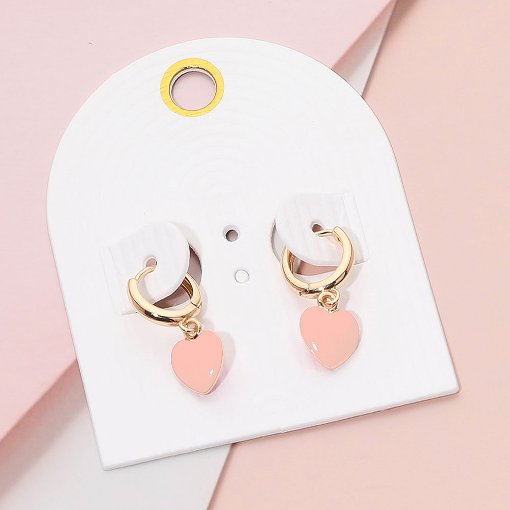 Details • Size : 0.5" X 0.8" • Huggie Back • Petite huggie earrings featuring a dangling heart charm for a soft, romantic touch. Lightweight and easy to wear, they add subtle movement and shine to everyday outfits while transitioning effortlessly to evening looks for a delicate yet eye-catching finishing detail. • Lead and Nickel Compliant
