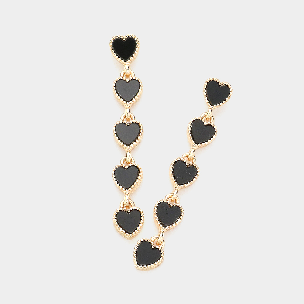 Heart Stone Link Dangle Evening Earrings