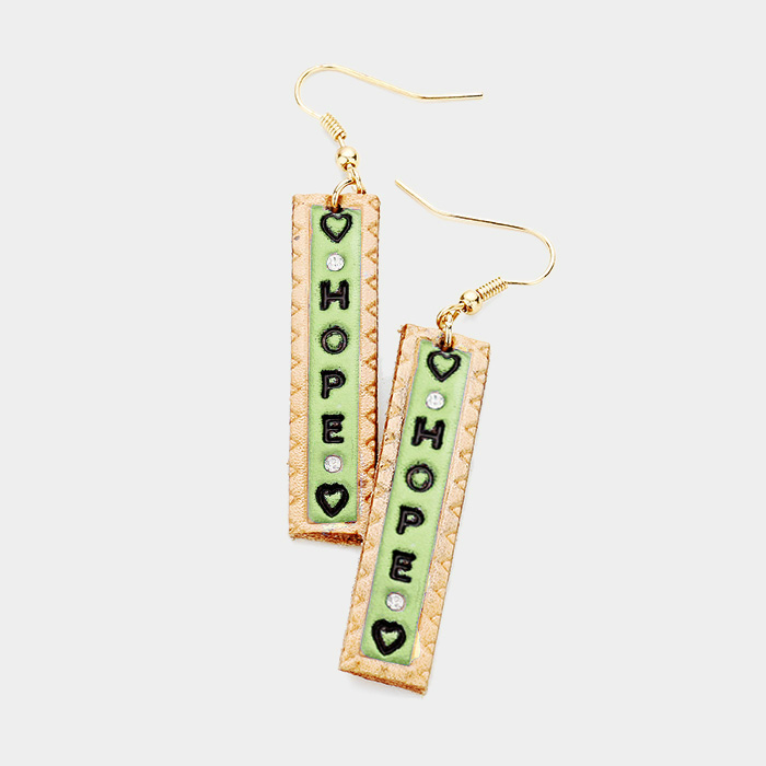 "Hope" Genuine Leather Bar Dangle Earrings