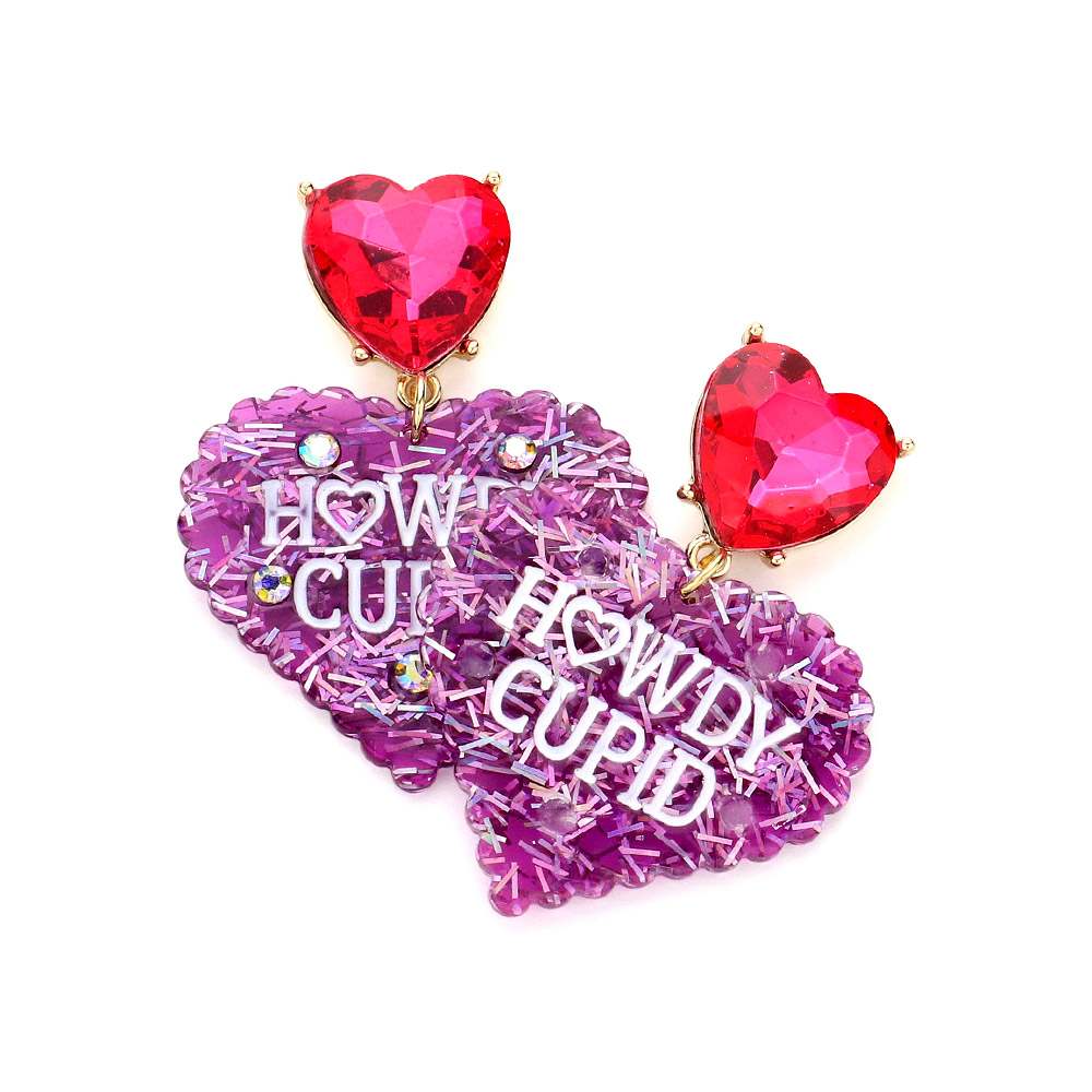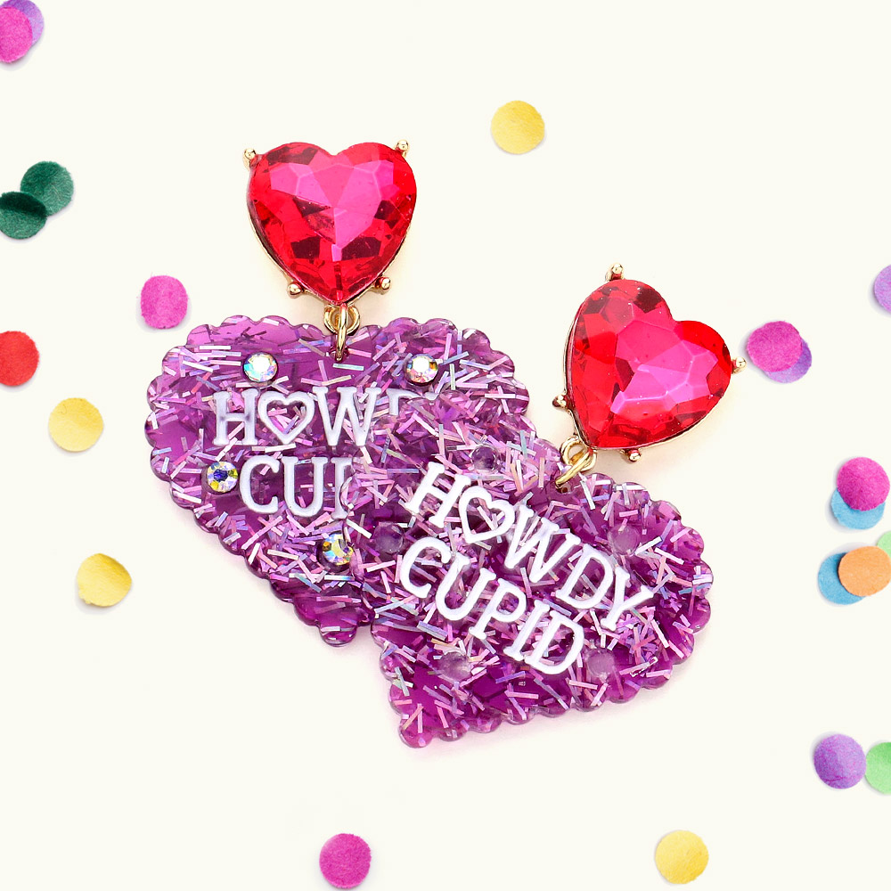 HOWDY CUPID Message Resin Heart Stone Dangle Earrings