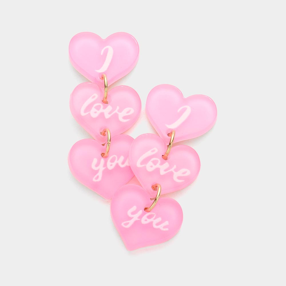 I love you Message Triple Resin Heart Link Dangle Earrings