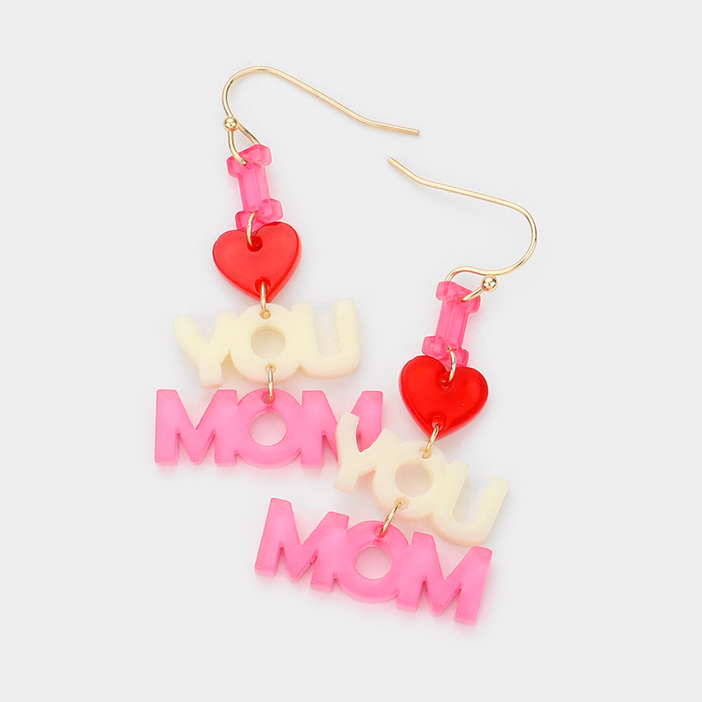 I LOVE YOU MOM Message Resin Dangle Earrings