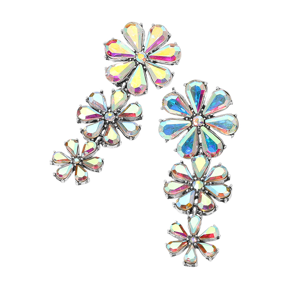 Details • Size : 1" X 2.5" • Post Back • Elevate your style with these dazzling multi-flower drop earrings, designed with layered crystal petals for a radiant finish. A bold accessory perfect for parties or formal occasions, adding brilliance and charm to any ensemble. • Lead and Nickel Compliant