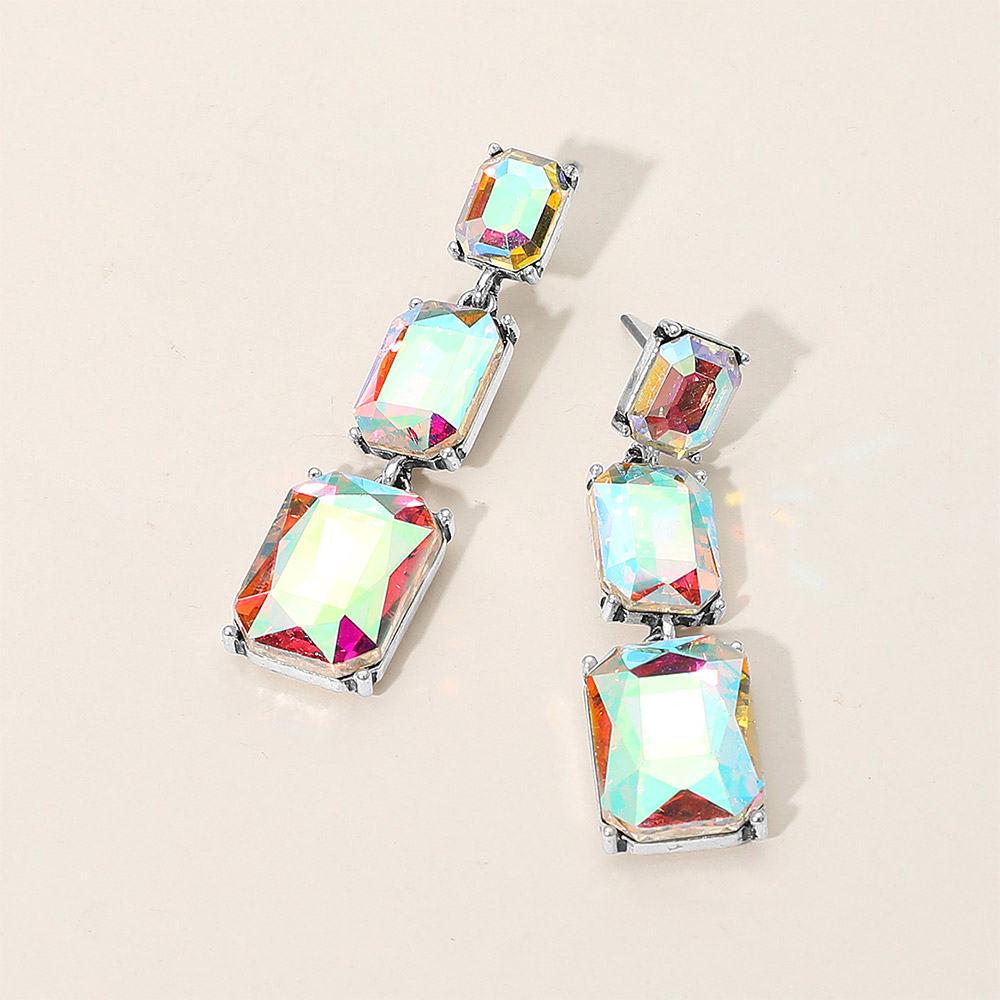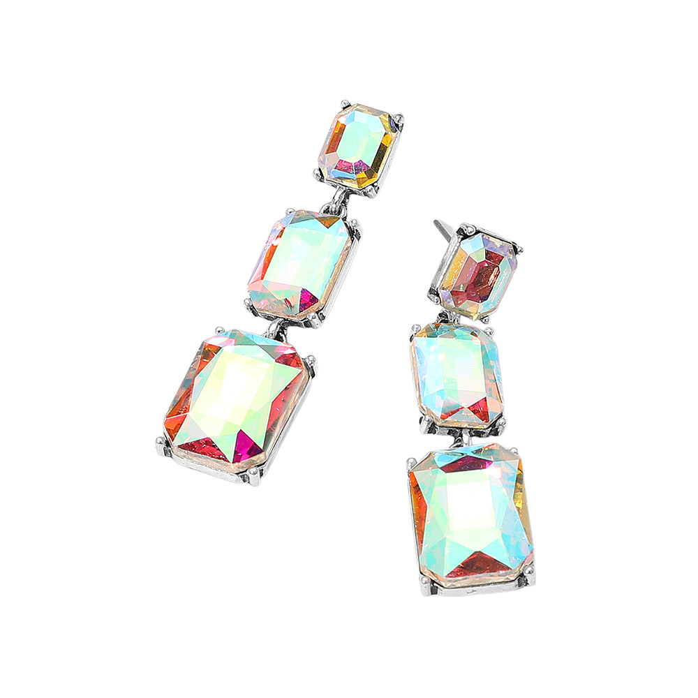 Details • Size : 0.5" X 2" • Post Back • Elevate your look with these geometric drop earrings featuring shimmering faceted crystals. The linear design adds modern flair, perfect for evening wear, weddings, or special occasions with bold style. • Lead and Nickel Compliant