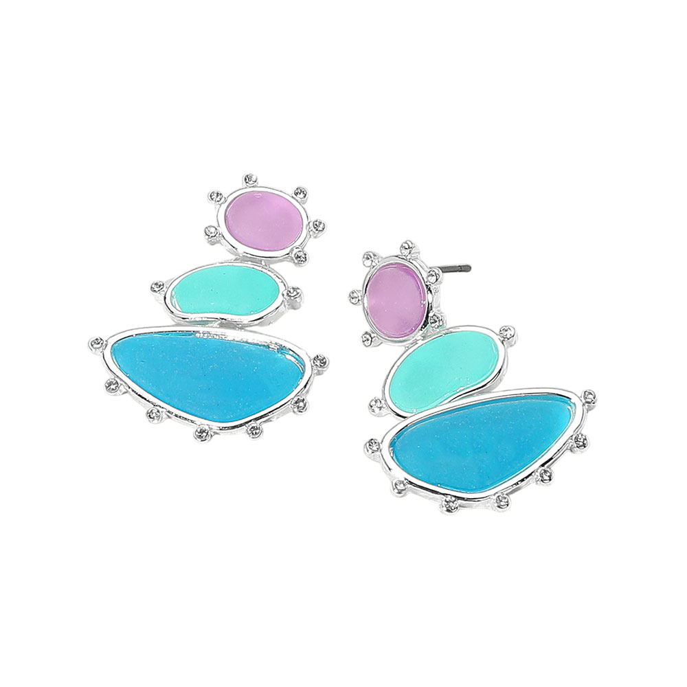 Details • Size : 1" X 1.25" • Post Back • These modern stud earrings showcase an artistic arrangement of layered stone-like elements in smooth, organic shapes. Surrounded by subtle metallic accents, they create a bold yet refined statement. Perfect for adding contemporary flair to casual looks or sophisticated ensembles. • Lead and Nickel Compliant