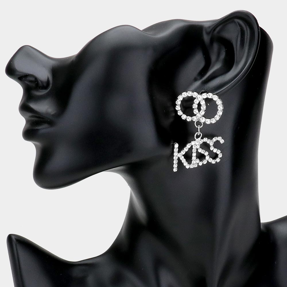 KISS Rhinestone Embellished Message Dangle Earrings