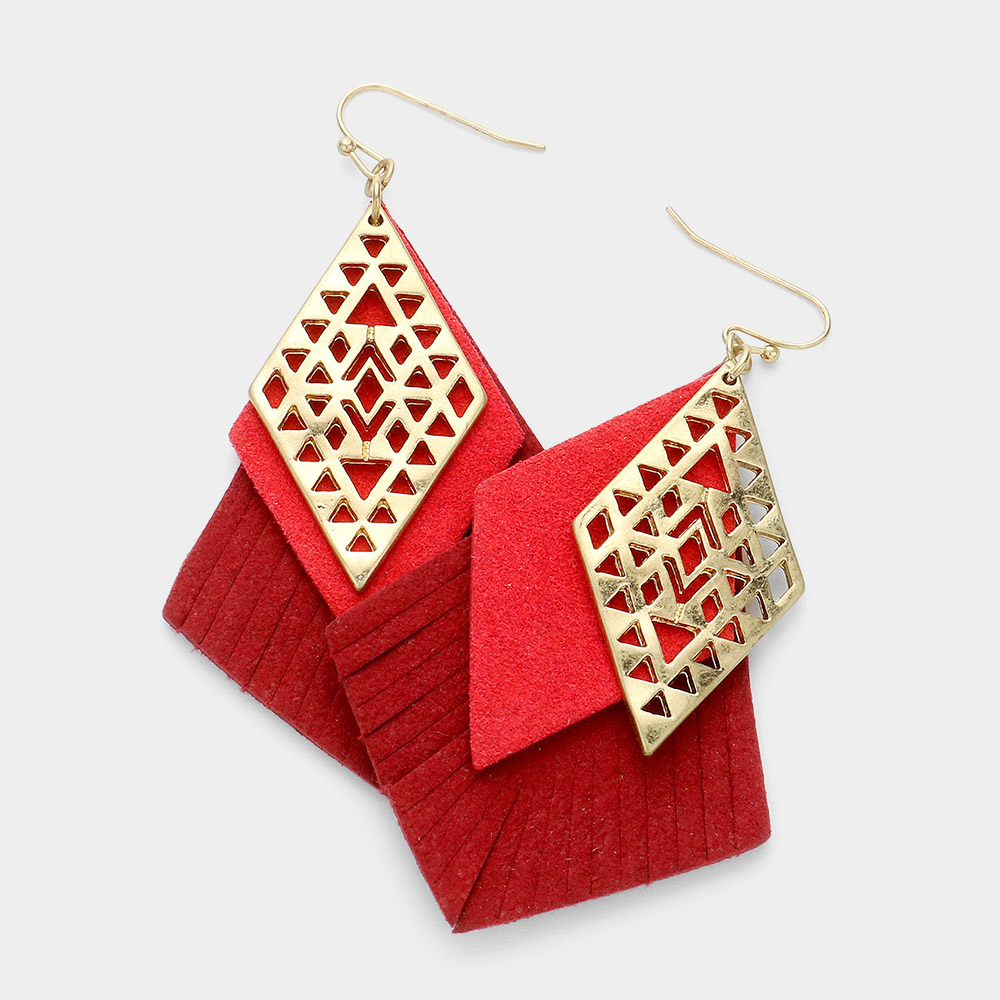 Metal Filigree Double Leaves Drop Dangle Earrings