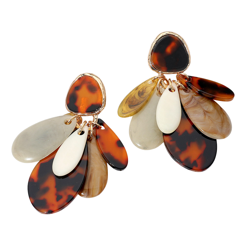 Details • Size : 1.75" X 3.25" • Post Back • Make a bold style impact with these statement resin drop earrings featuring layered teardrop accents in a mix of sleek, sculpted finishes. Their artistic, dimensional design adds movement and sophistication, creating a standout accessory perfect for elevating both casual and dressy looks. • Lead and Nickel Compliant