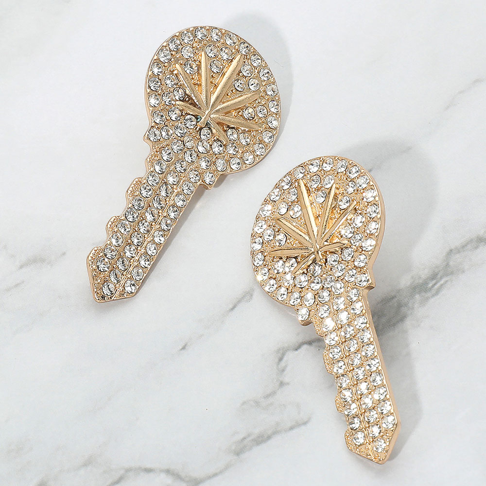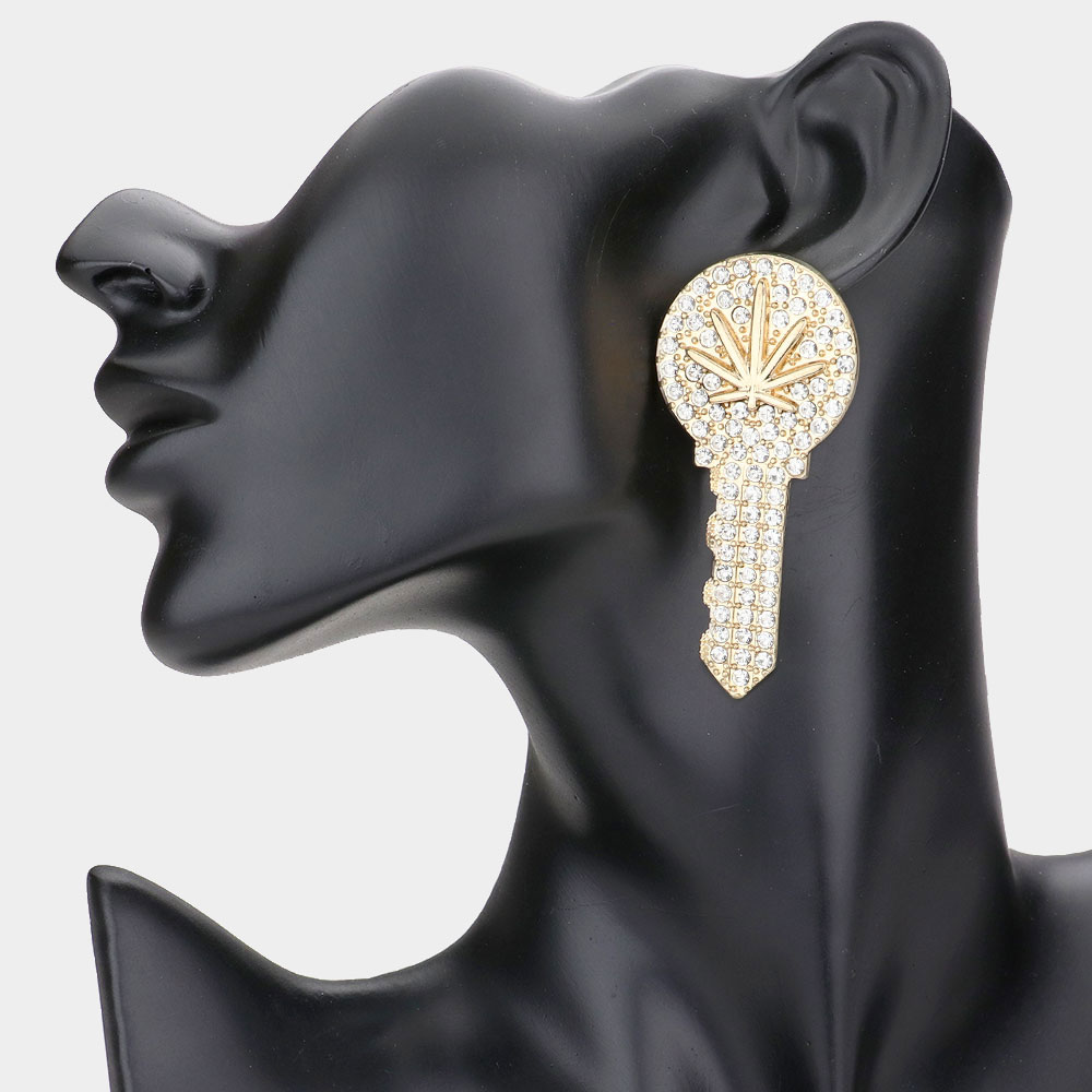 • Make a bold impression with crystal-studded key earrings, designed to sparkle and symbolize unlocking style. A trendy and elegant accessory for standout looks.