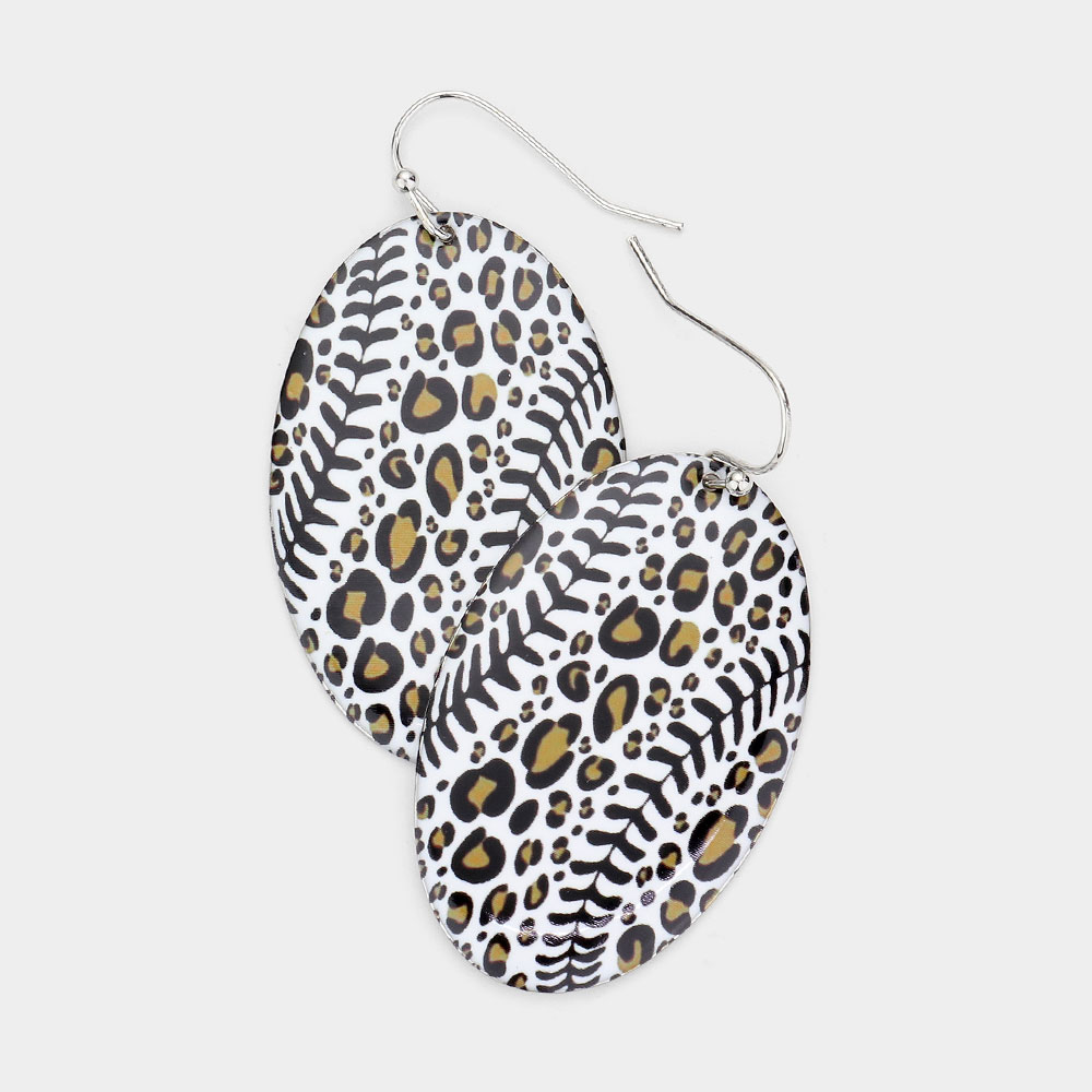 Leopard Patterned Metal Oval Dangle Earrings