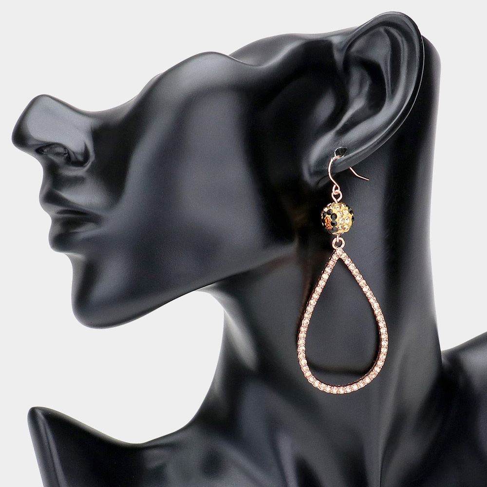 Leopard Patterned Shamballa Ball Rhinestone Open Teardrop Link Dangle Earrings