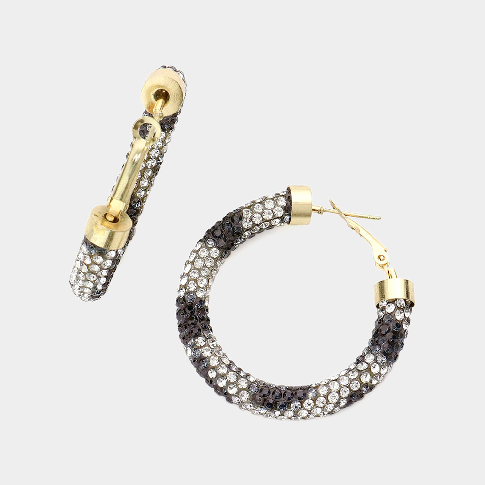Leopard Patterned Rhinestone Pave Hoop Earrings