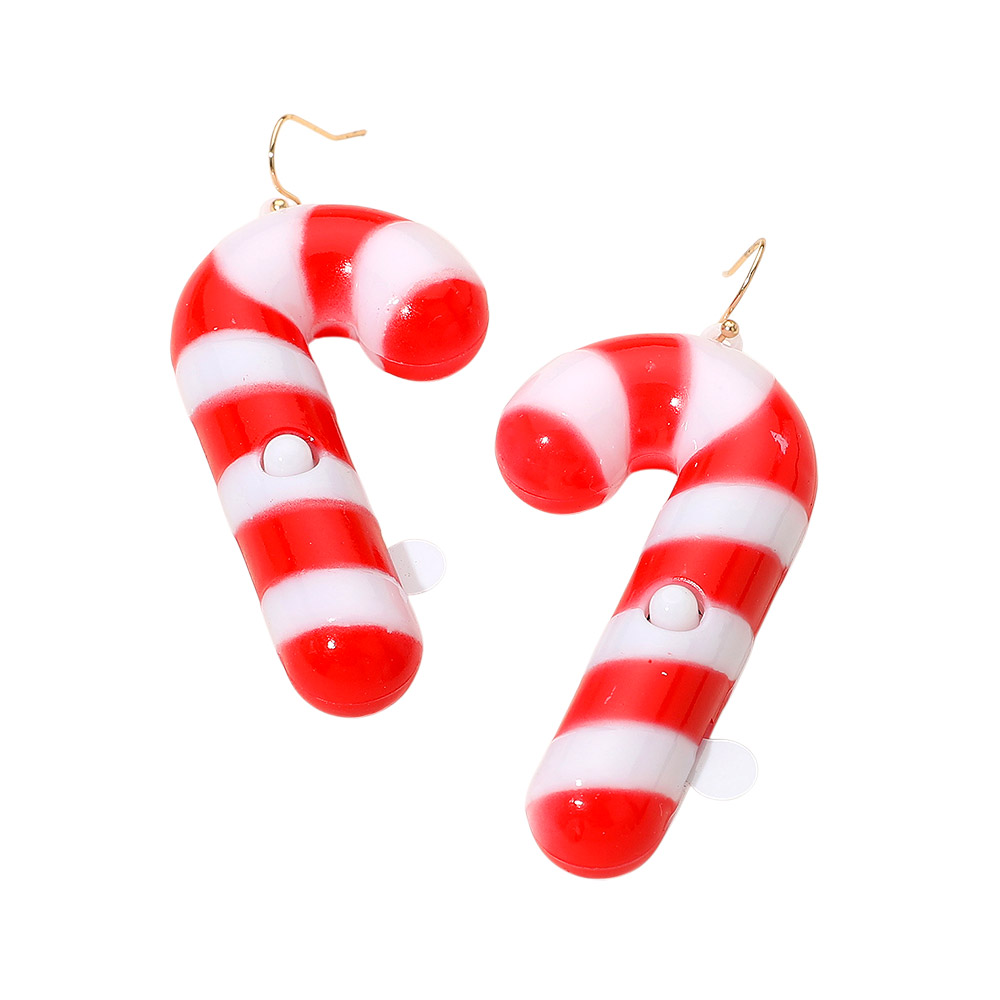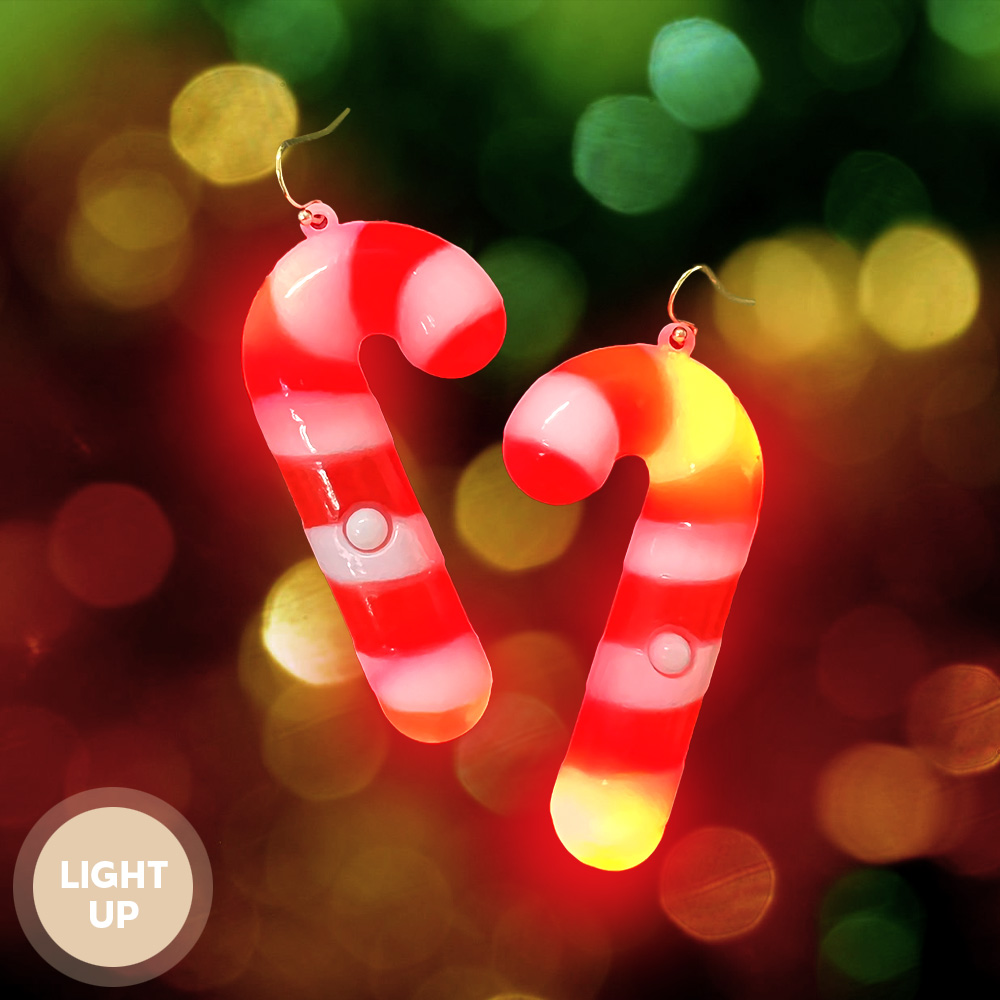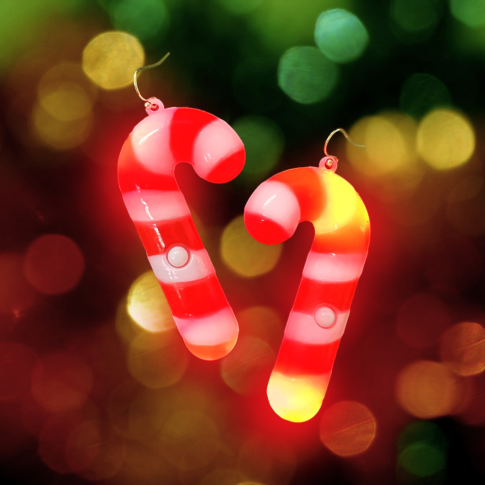 Details • Size : 1.25" X 3" • Fish Hook Back • Festive candy cane earrings that light up with holiday cheer. A playful accessory for Christmas parties, celebrations, or adding a glowing touch to your seasonal look. • Lead and Nickel Compliant