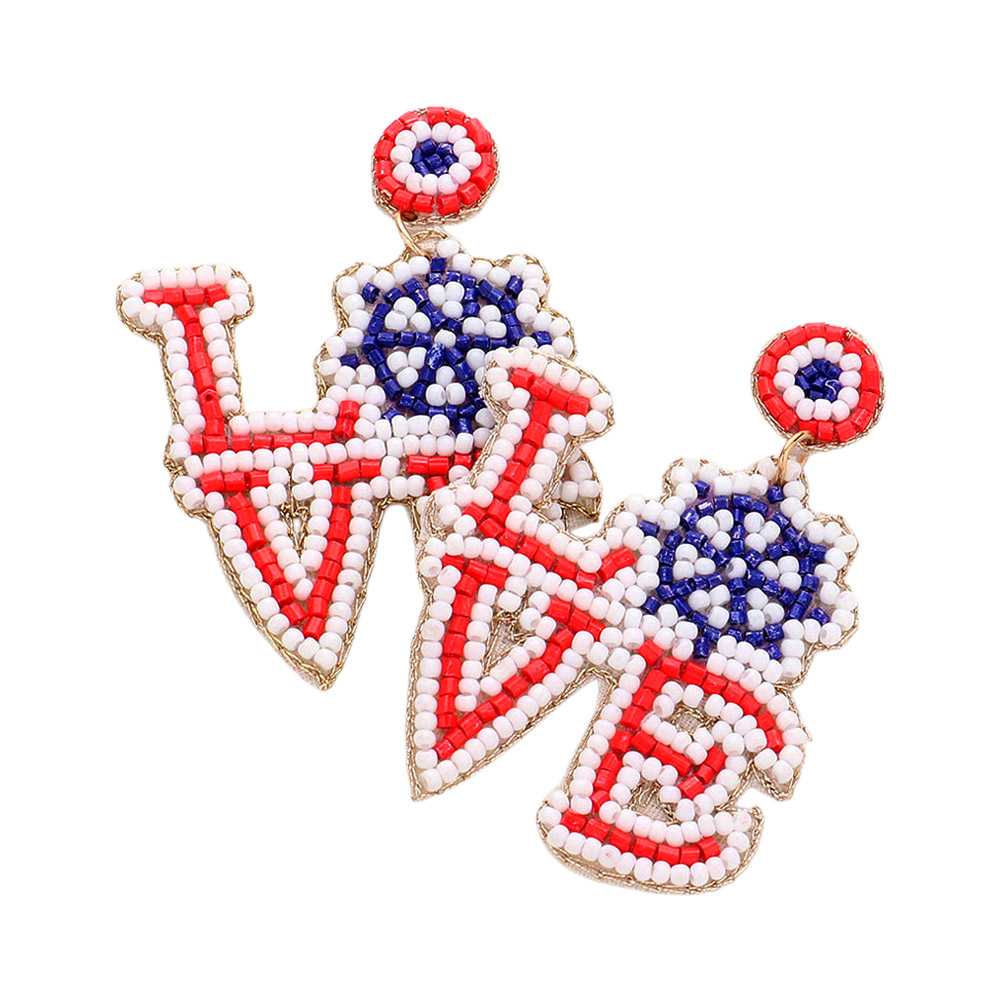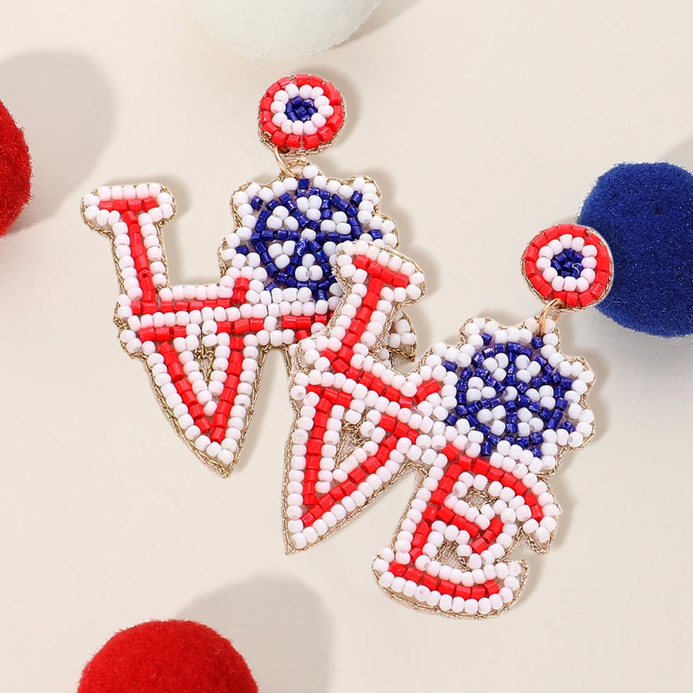 Love Message Felt Back American USA Flag Seed Beaded Ship Wheel Pointed Dangle Earrings