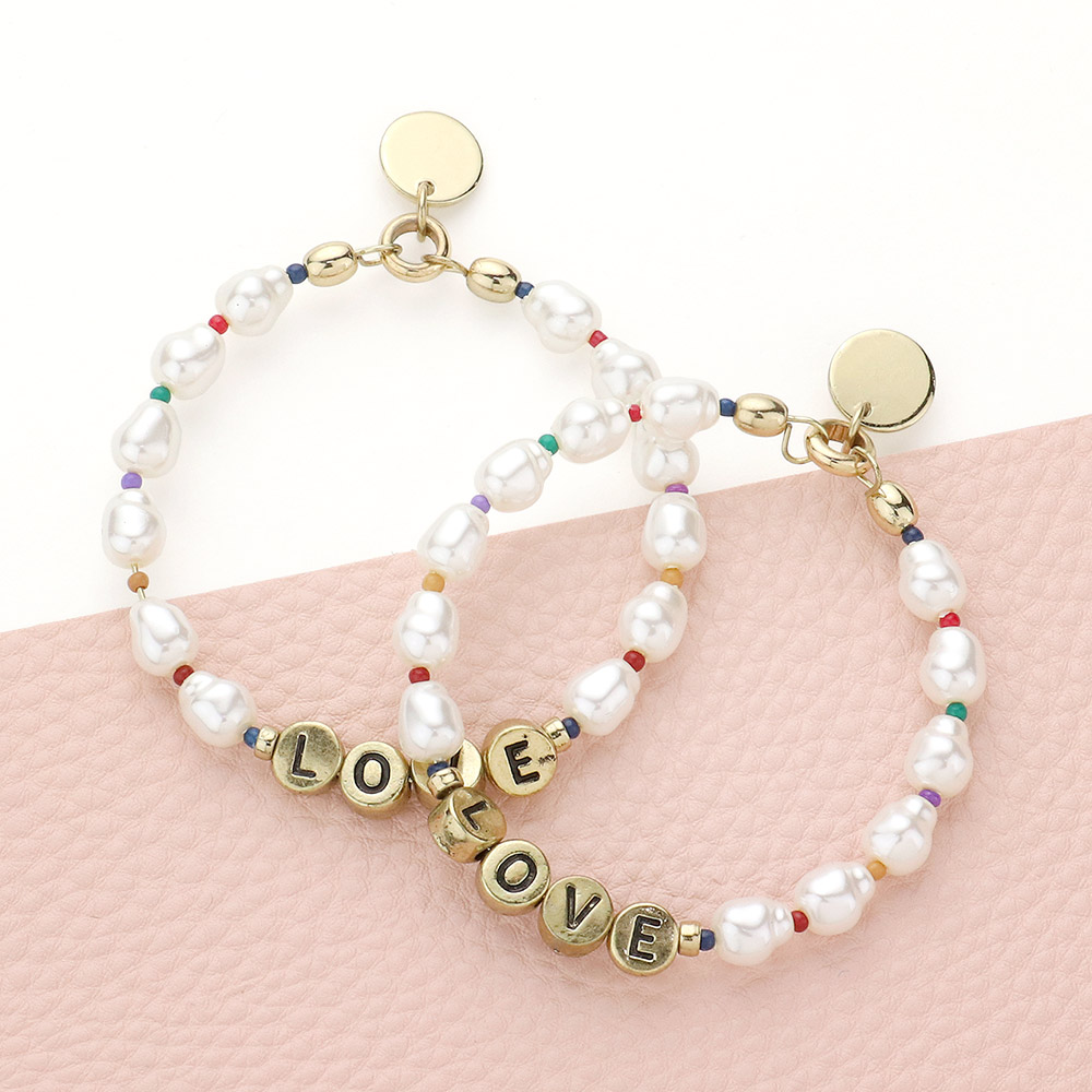 3PCS - Quatrefoil Pearl Beaded Stretch Multi Layered Bracelets