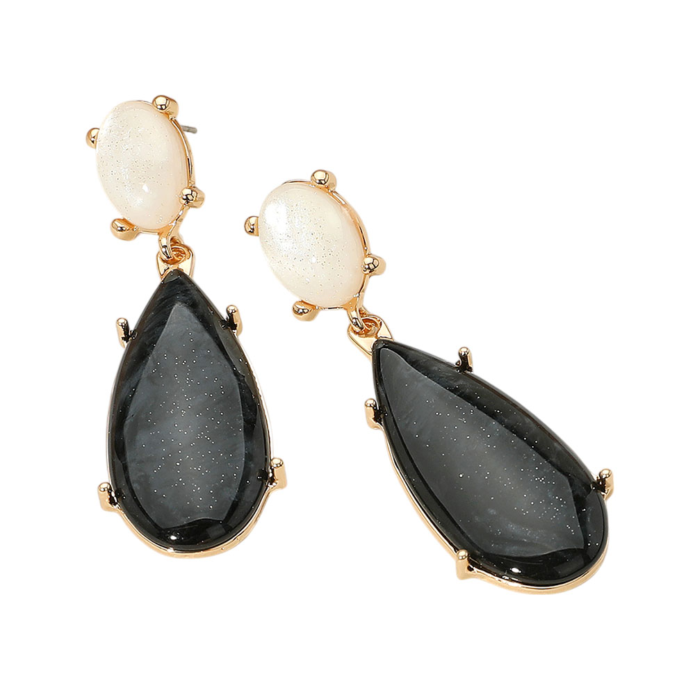 • Elegant teardrop earrings featuring smooth marbled resin stones in a secure prong setting. A sophisticated accessory for elevating both casual and formal looks with a refined, natural touch.