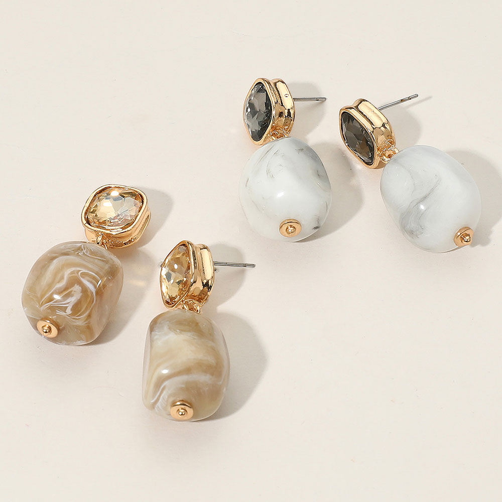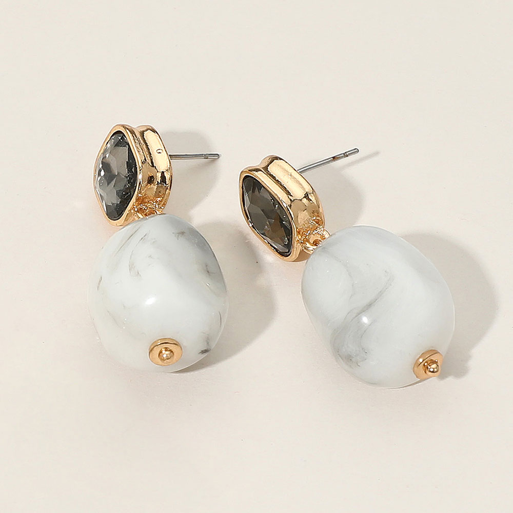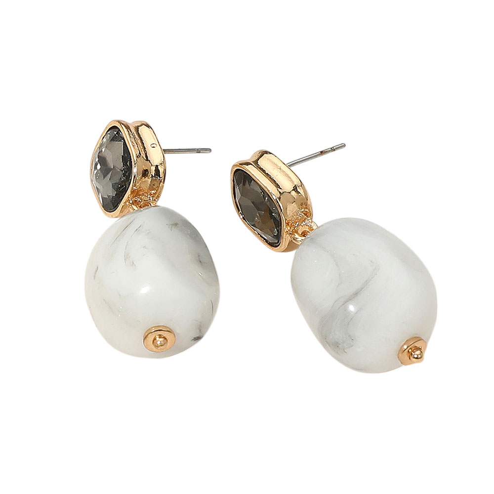 Details • Size : 0.7" X 1.5" • Post Back • Chic oval bead earrings paired with faceted gemstone accents for a contemporary touch. Ideal for casual wear or adding polish to your look. Lightweight design perfect for everyday elegance and comfort. • Lead and Nickel Compliant