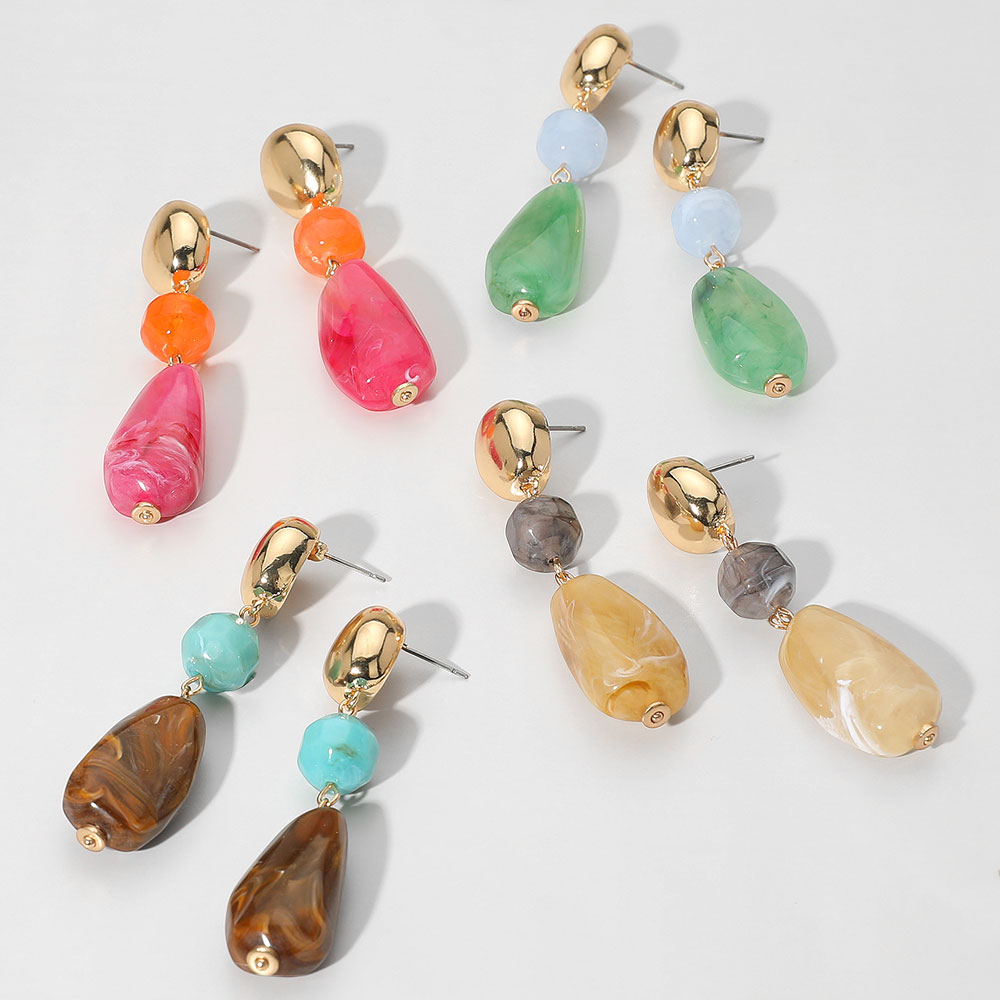 • Bold and colorful drop earrings with mixed resin beads and a polished metal stud. Lightweight and eye-catching, perfect for everyday wear or adding a vibrant accent to any outfit.