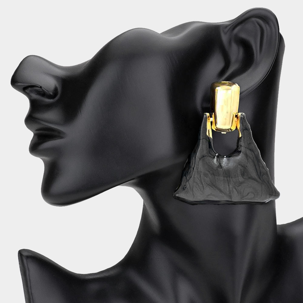 Marbled Resin Triangle Door Knocker Earrings