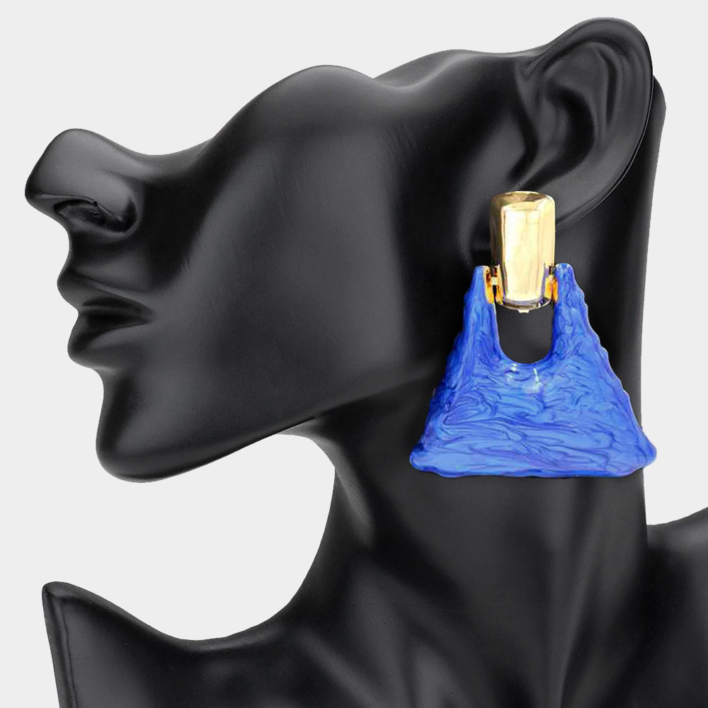 Geometric Chunky Marbled Resin Pebble Drop Earrings