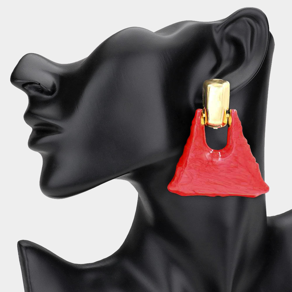 Marbled Resin Triangle Door Knocker Earrings