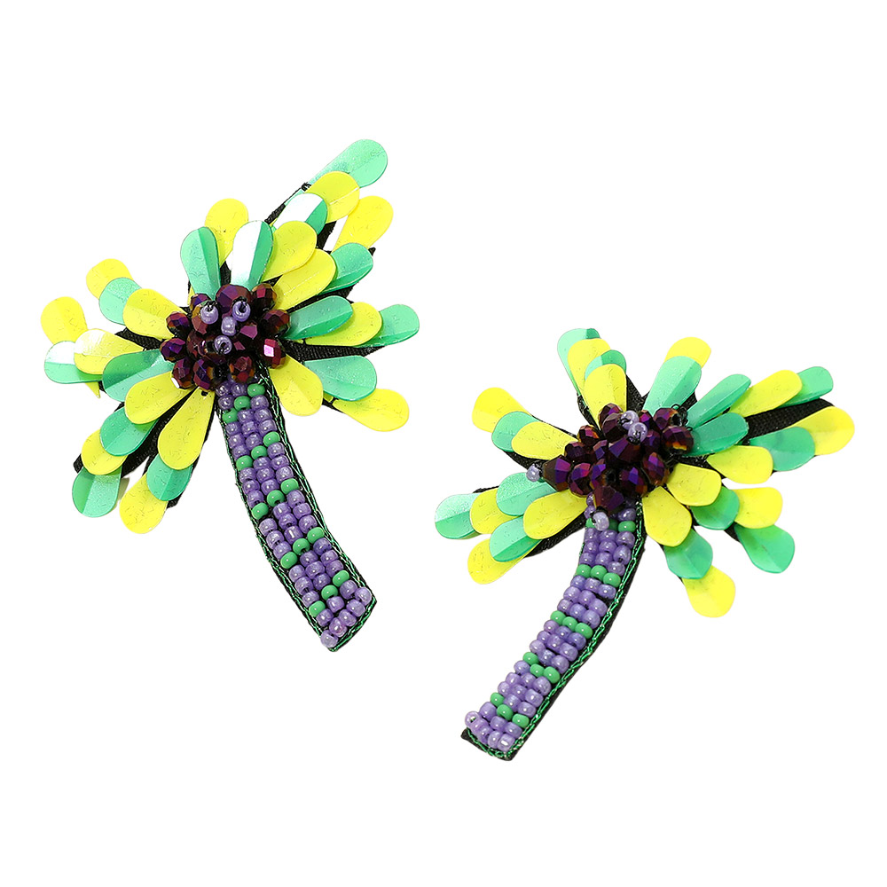 Mardi Gras Beaded Palm Tree Earrings Mardi Gras Beaded Palm Tree Earrings