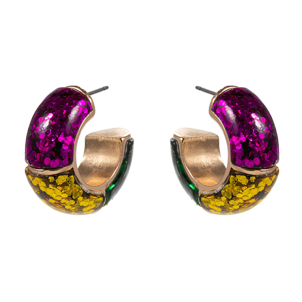 Mardi Gras Confetti Glitter Hoop Earrings Mardi Gras Confetti Glitter Hoop Earrings