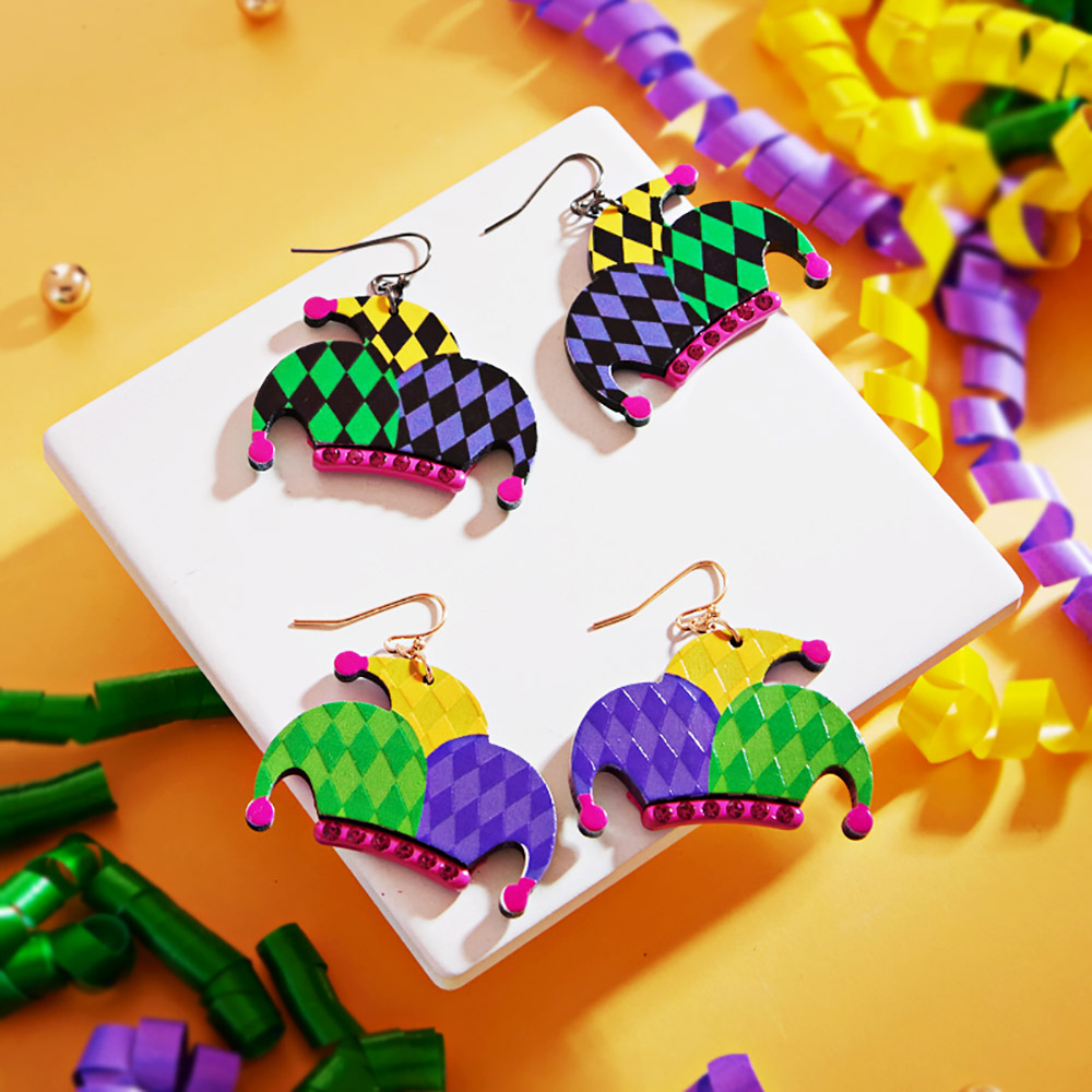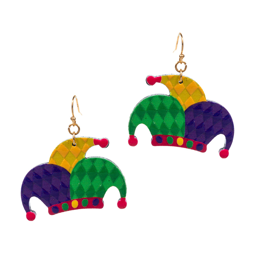 Mardi Gras Jester Pierrot Hat Dangle Earrings
