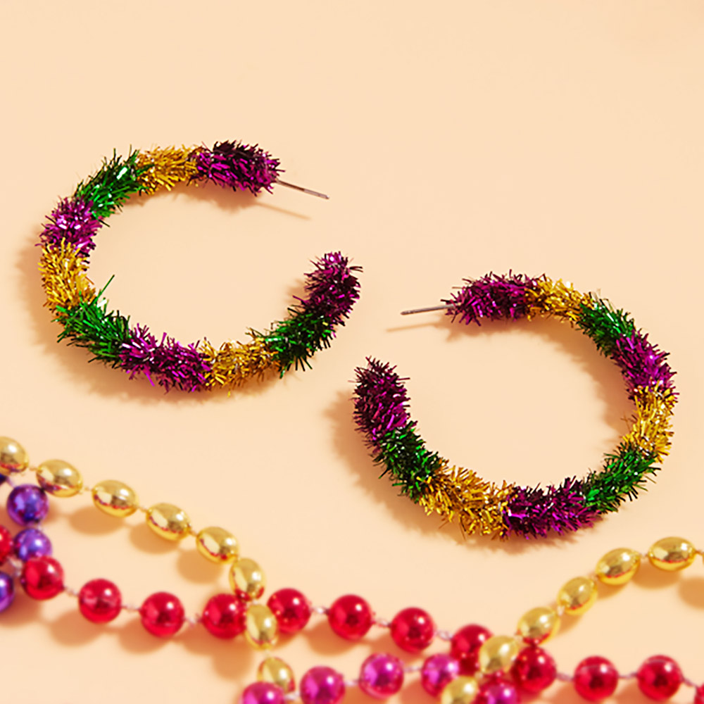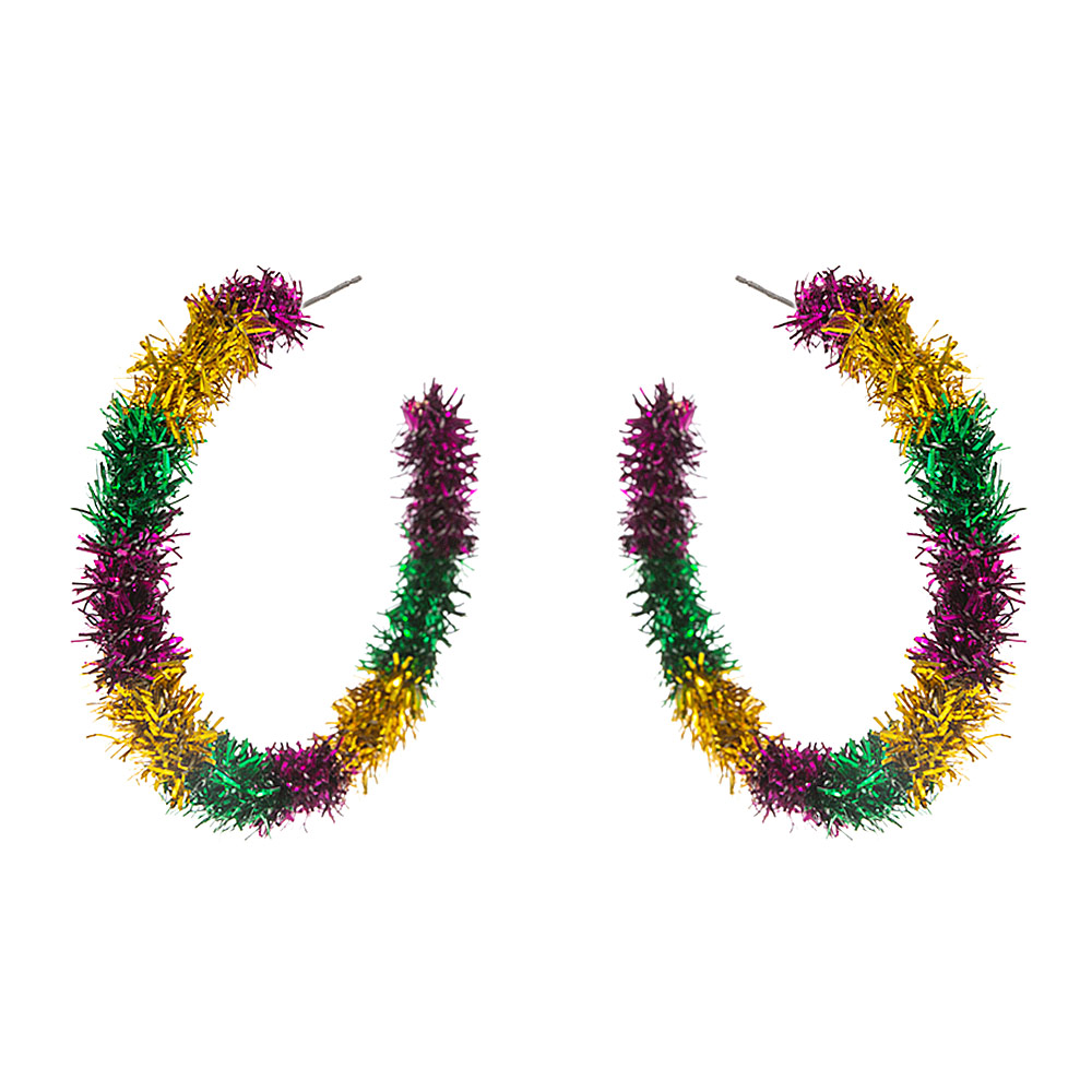 Mardi Gras Tinsel Hoop Earrings Mardi Gras Tinsel Hoop Earrings