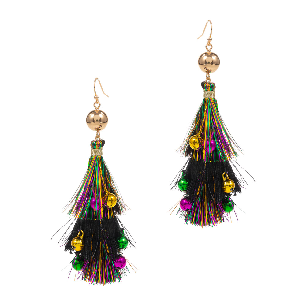 Mardi Gras Triple Fringe Layered Dangle Earrings