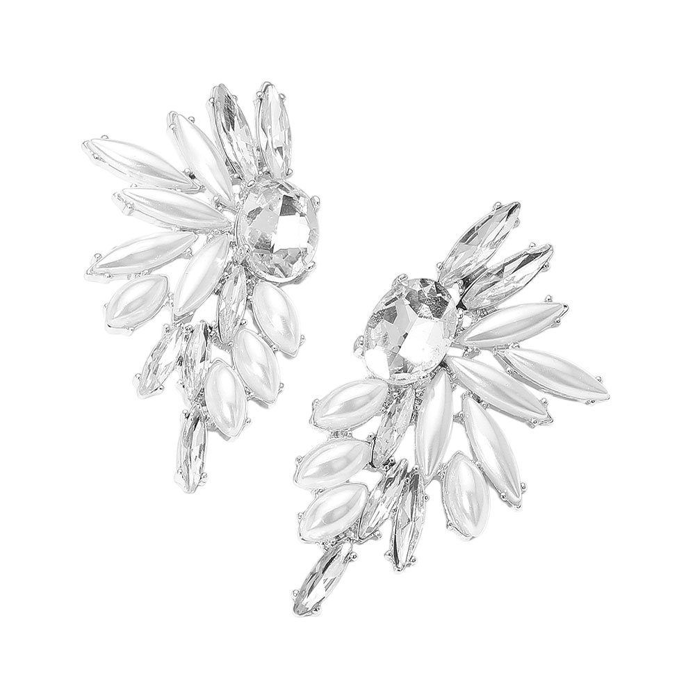 Marquise Pearl Stone Cluster Embellished Wing Fan Earrings
