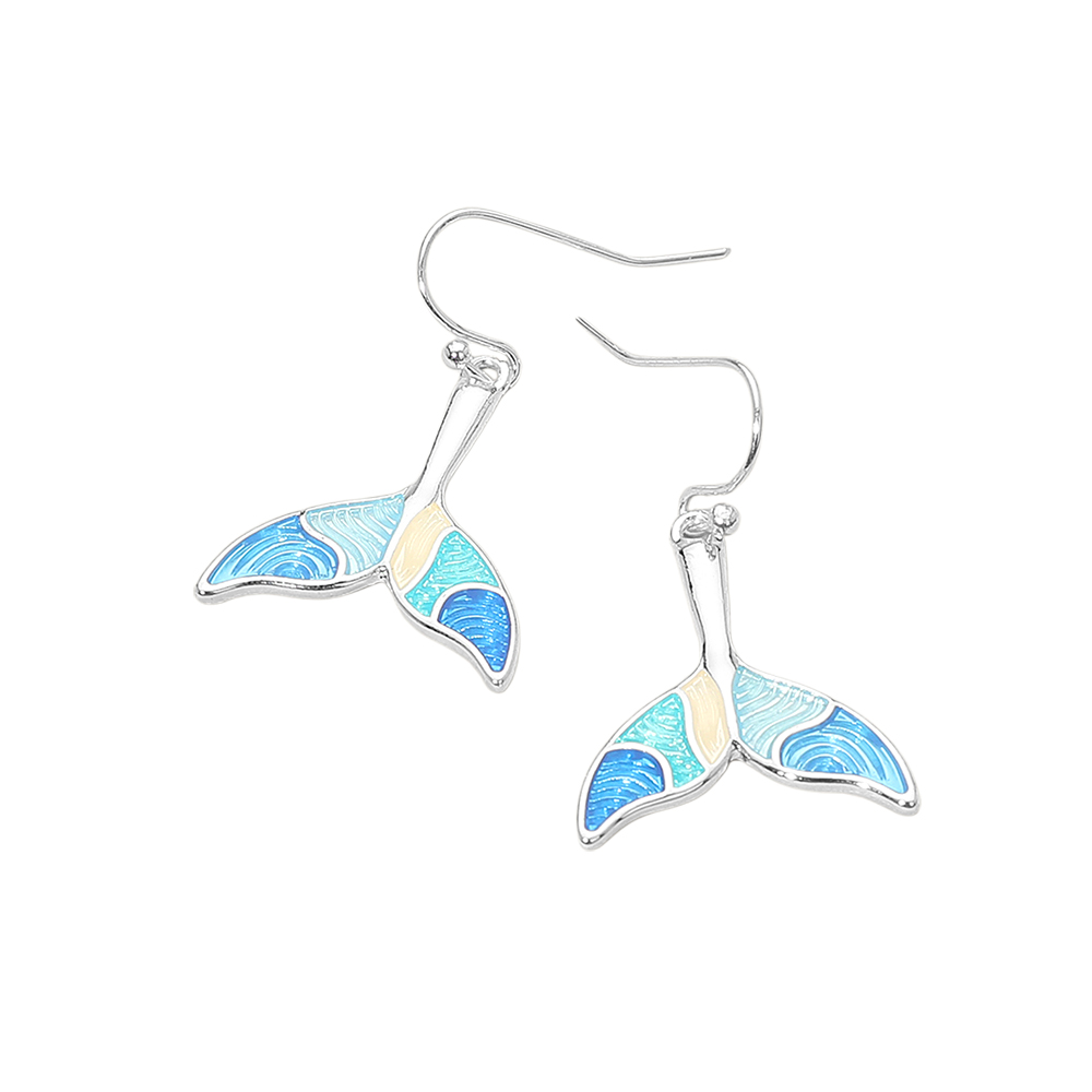 Details • Size : 0.8" X 1.25" • Fish Hook Back • Whimsical mermaid tail charm drop earrings featuring a graceful ocean-inspired silhouette with smooth detailing and lightweight movement. Perfect for summer outfits, beach vacations, coastal themes, and everyday wear, these earrings add seaside magic, playful personality, and a charming finishing touch to any look. • Lead and Nickel Compliant