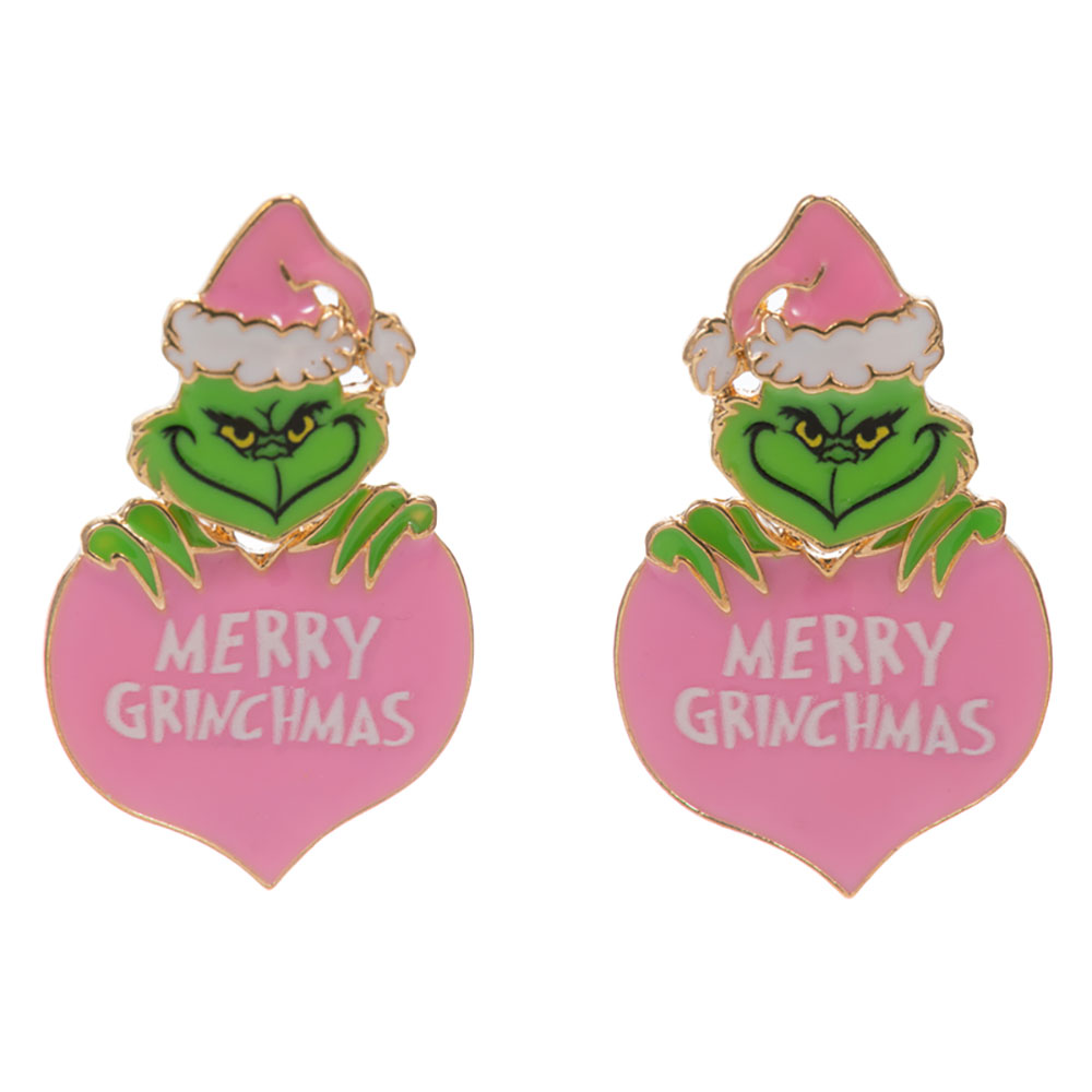 Details • Size : 1.1" X 1.8" • Titanium Post Back • Celebrate the season with playful "Merry Grinchmas" earrings featuring a festive holiday design. A fun accessory for Christmas parties, themed outfits, or stocking stuffers for anyone who loves holiday cheer. • Hypoallergenic • Lead and Nickel Compliant