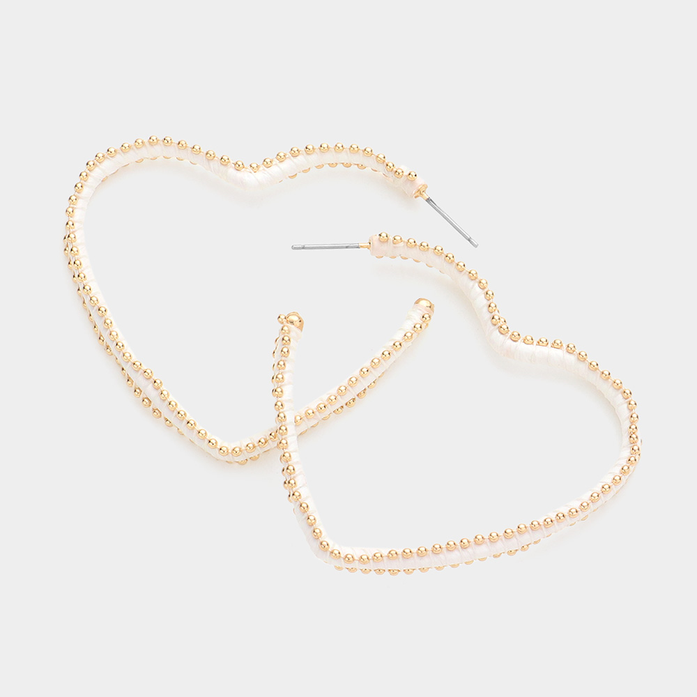 14K Gold Plated Two Tone Ball Beaded CZ Stone Paved Heart Pendant Necklace