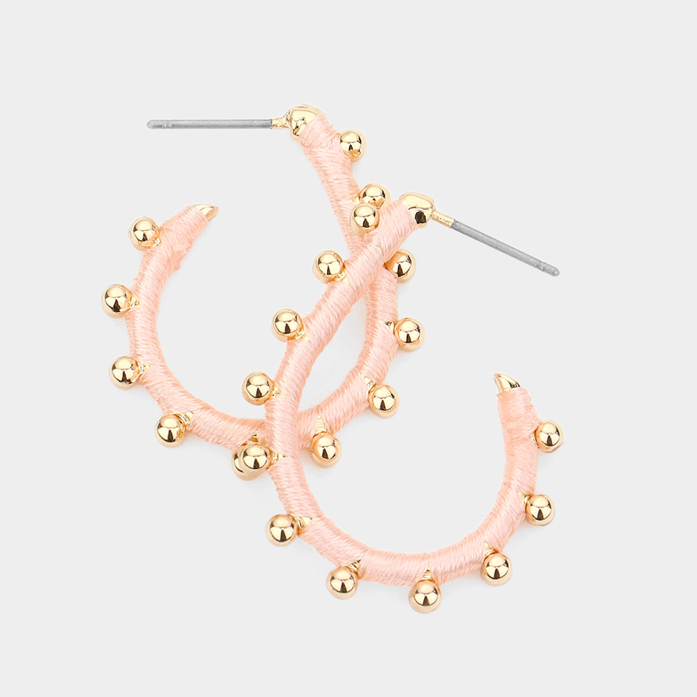 Metal Ball Trimmed Thread Wrapped Teardrop Earrings