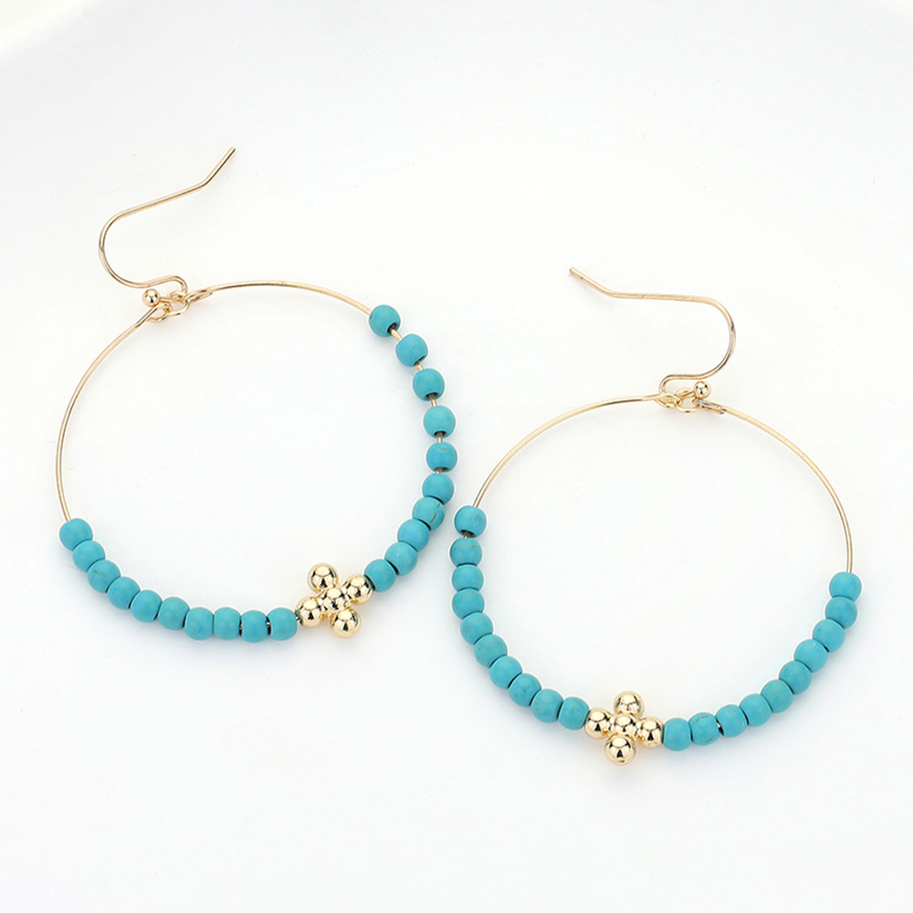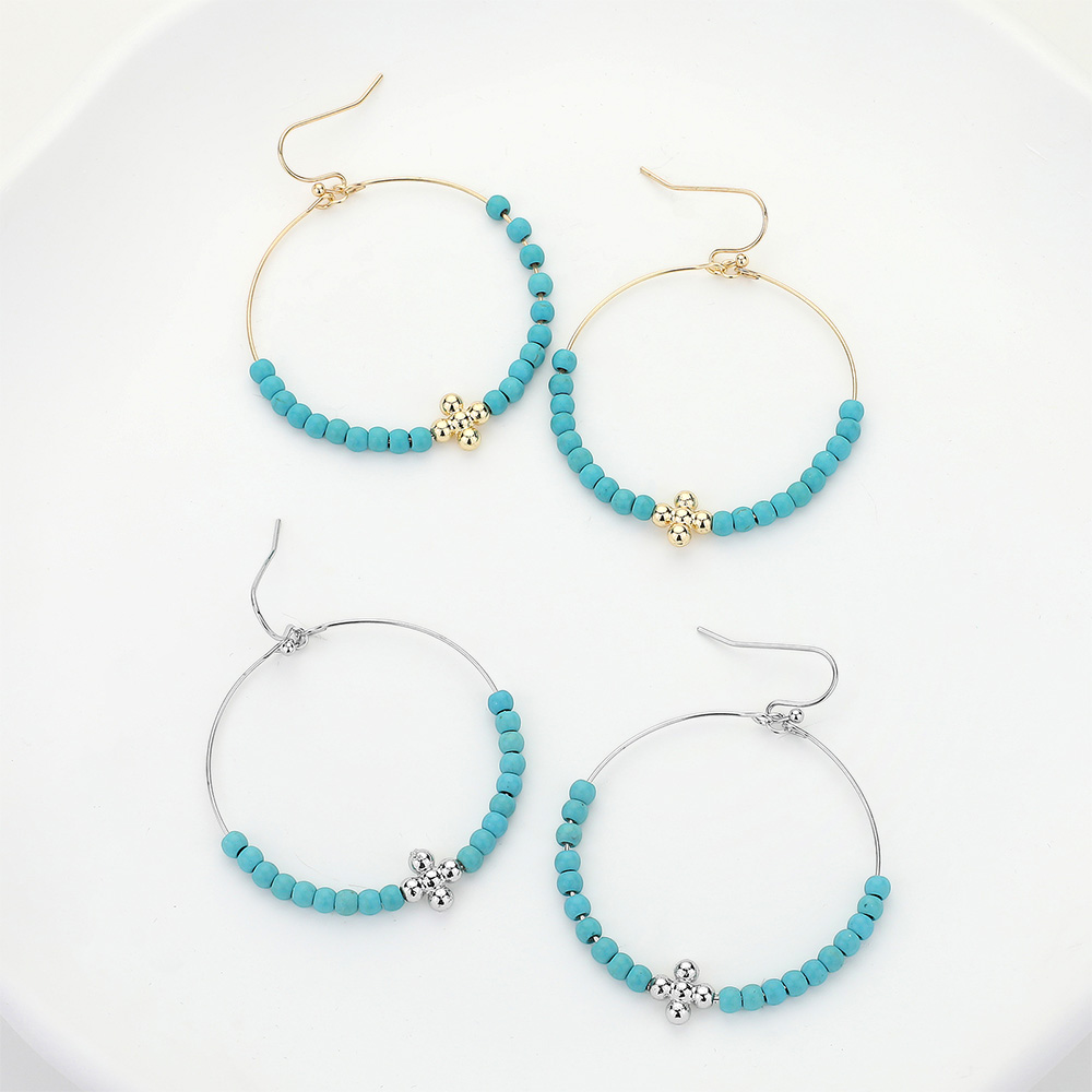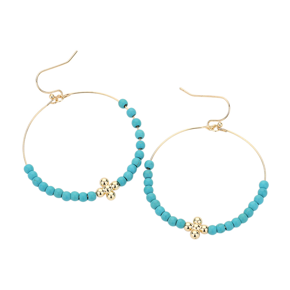 Metal Bubble Flower Pointed Beaded Ring Dangle Earrings