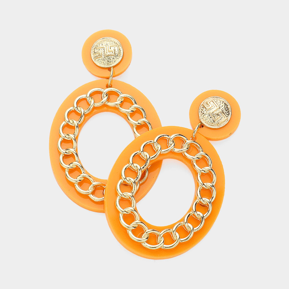 Metal Chain Accented Open Oval Dangle Earrings