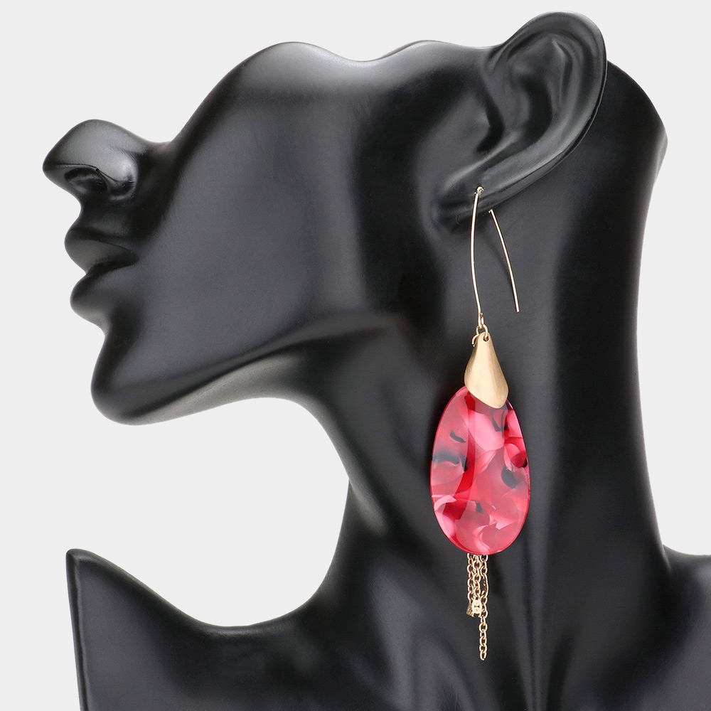 Metal Chain Dropped Celluloid Acetate Dangle Earrings