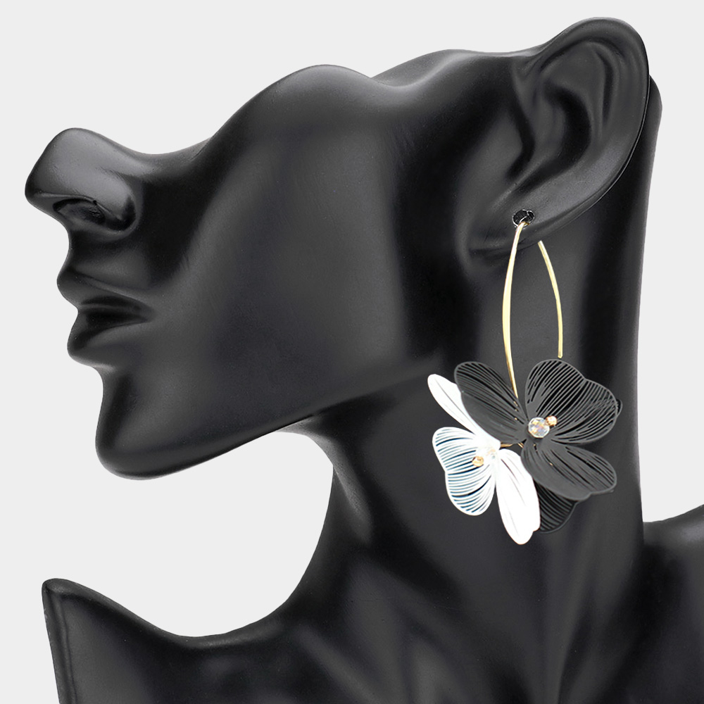 Details • Size : 1.5" X 2.25" • Long Hook Back • Standout floral dangle earrings with layered petal accents and elegant curves. A striking accessory that adds artistic flair and modern sophistication to any outfit. Ideal for both casual and formal wear. • Lead and Nickel Compliant