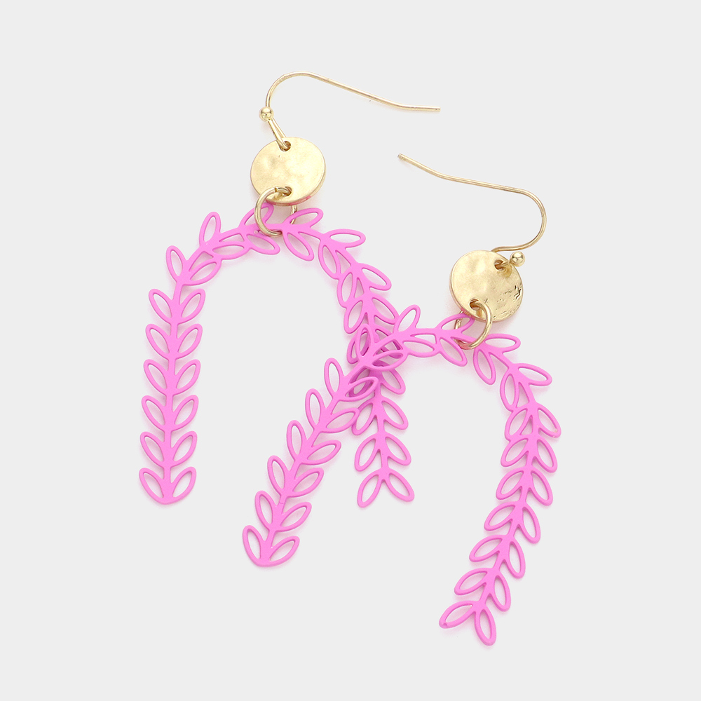 Metal Disc Sprout Cluster Colored Arch Dangle Earrings