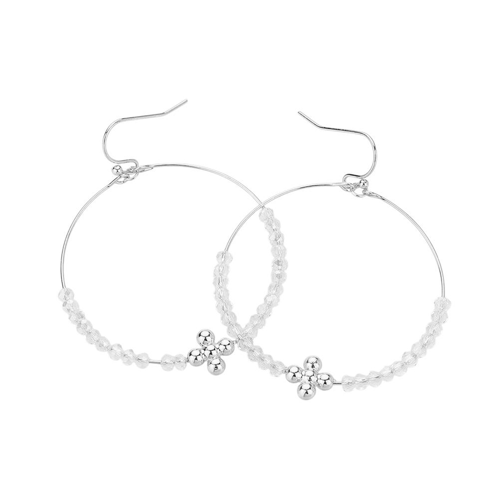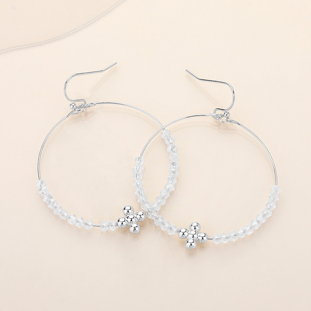 Metal Flower Faceted Beaded Open Ring Dangle Earrings
