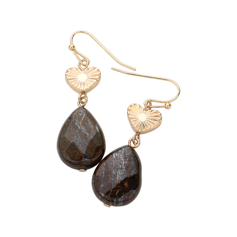 Metal Heart Teardrop Natural Stone Link Dangle Earrings