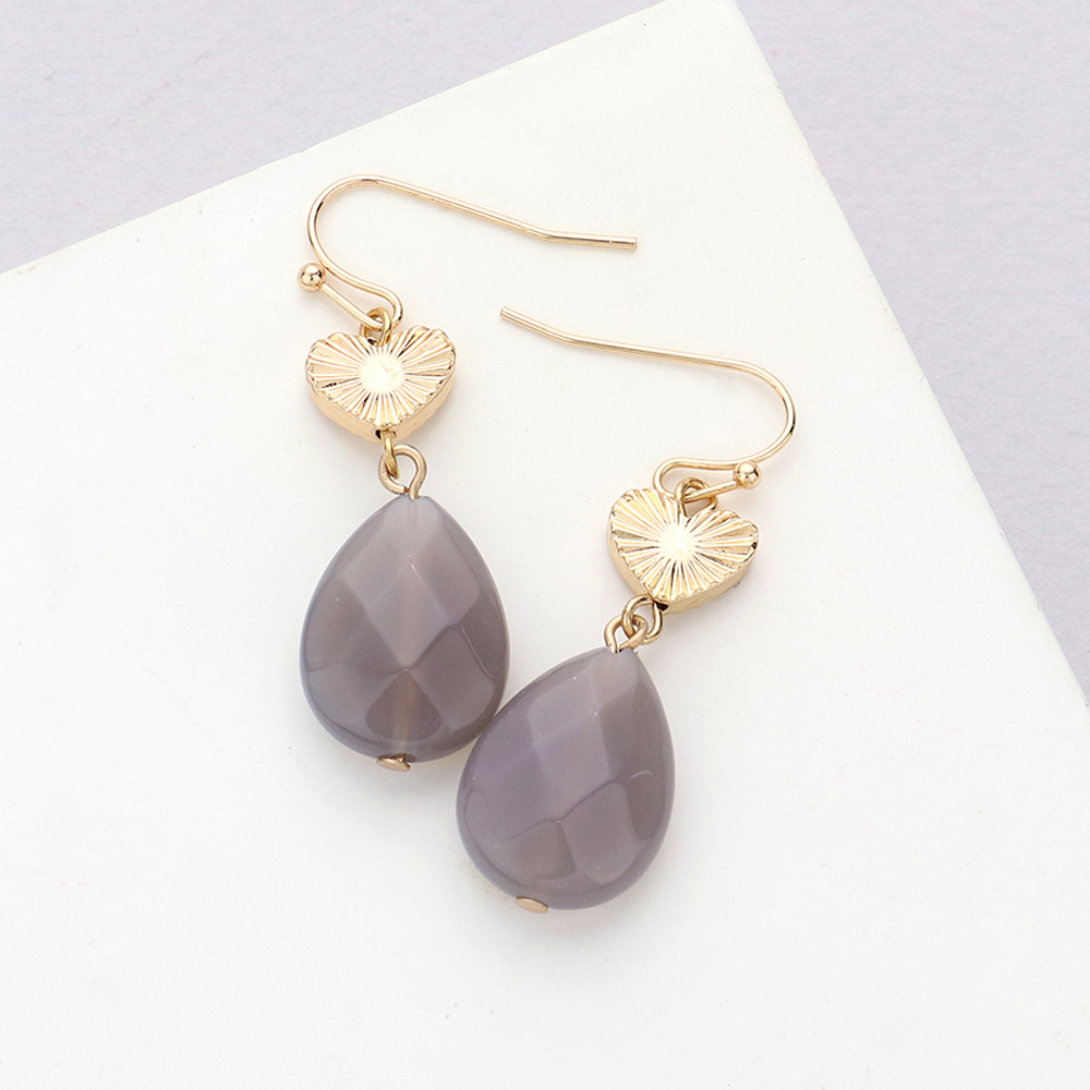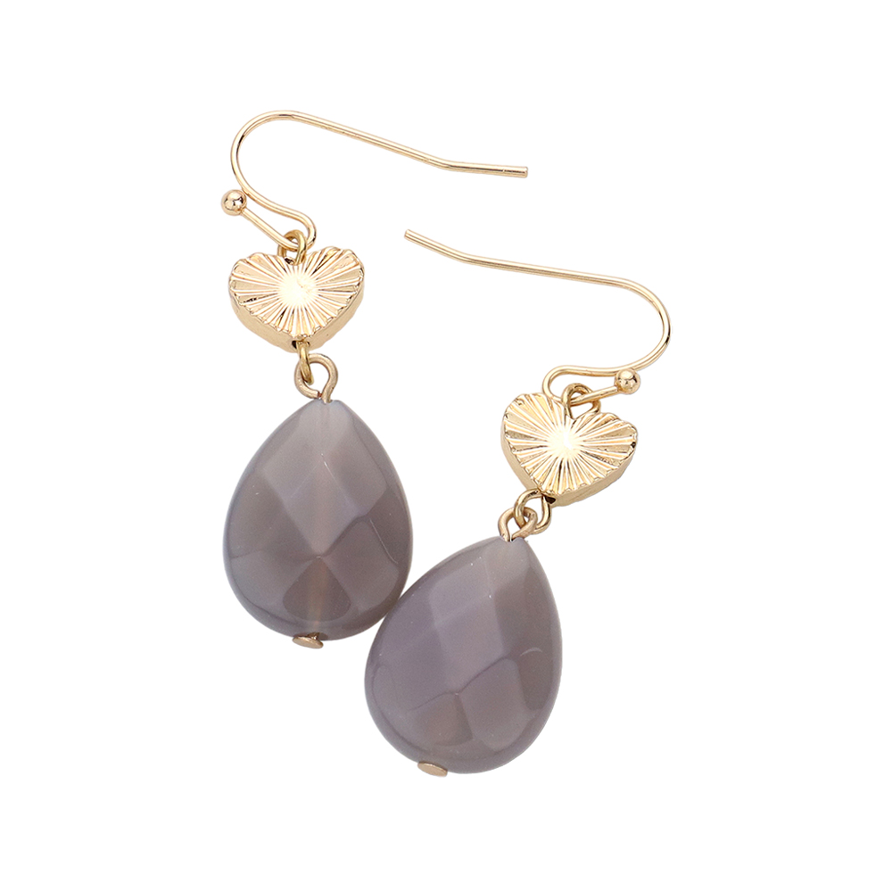 Metal Heart Teardrop Natural Stone Link Dangle Earrings