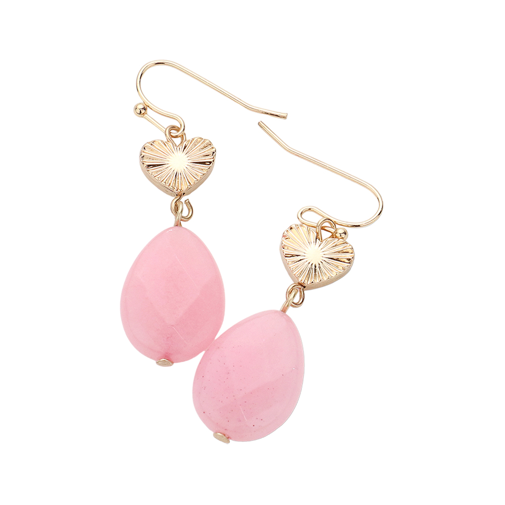 Metal Heart Teardrop Natural Stone Link Dangle Earrings