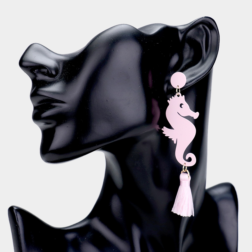 Two Tone Textured Metal Sand Dollar Pointed Starfish Embossed Heart Dangle Earrings
