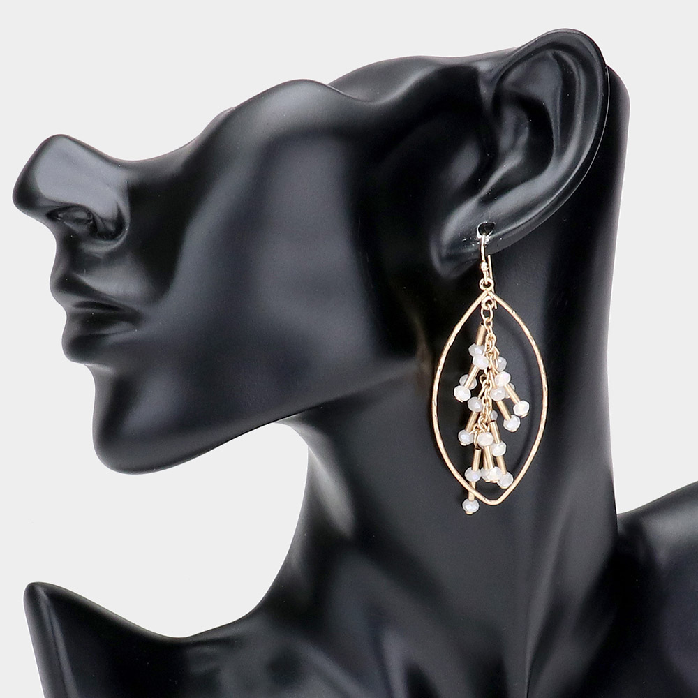 Metal Tube Faceted Bead Cluster Detail Petal Dangle Earrings